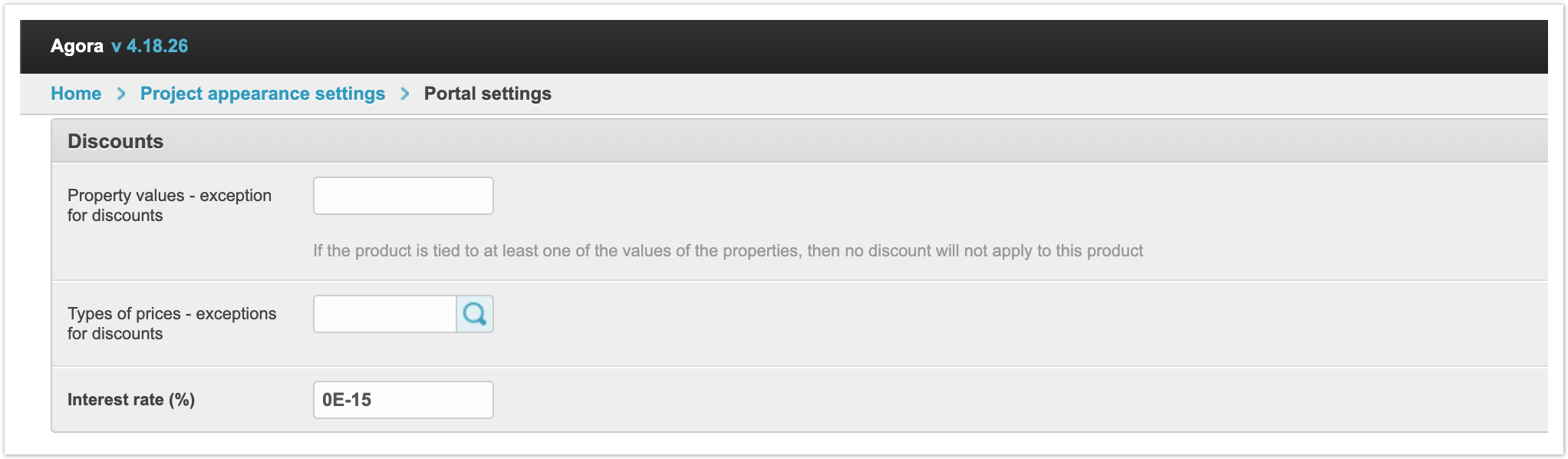 Property values - exception for discounts - in this field, you can select property values that will exclude the product from the discount action. That is, if the product has at least one of the property values specified in this field, then the discount will not be applied to it. Types of prices - exceptions for discounts - in this field you can specify those types of prices for which discounts will not apply. Interest rate - this field indicates the percentage for remuneration Email sending control