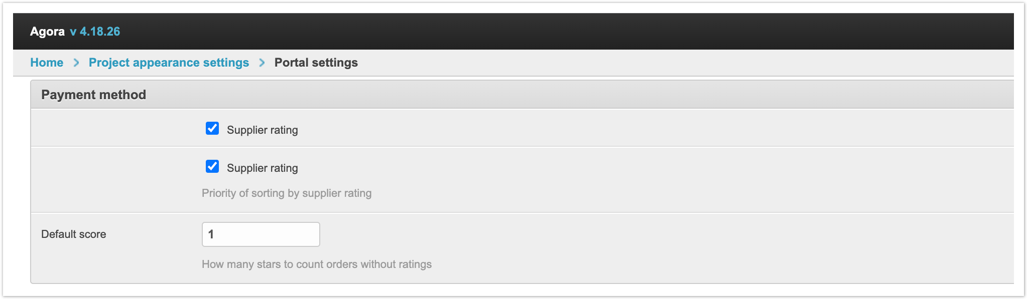 Supplier rating - setting includes a rating system for suppliers. Manual vendor rating - the setting works only in conjunction with the previous setting. Default score - This field specifies what rating will be assigned to orders that have not been rated by users. Cart table section settings