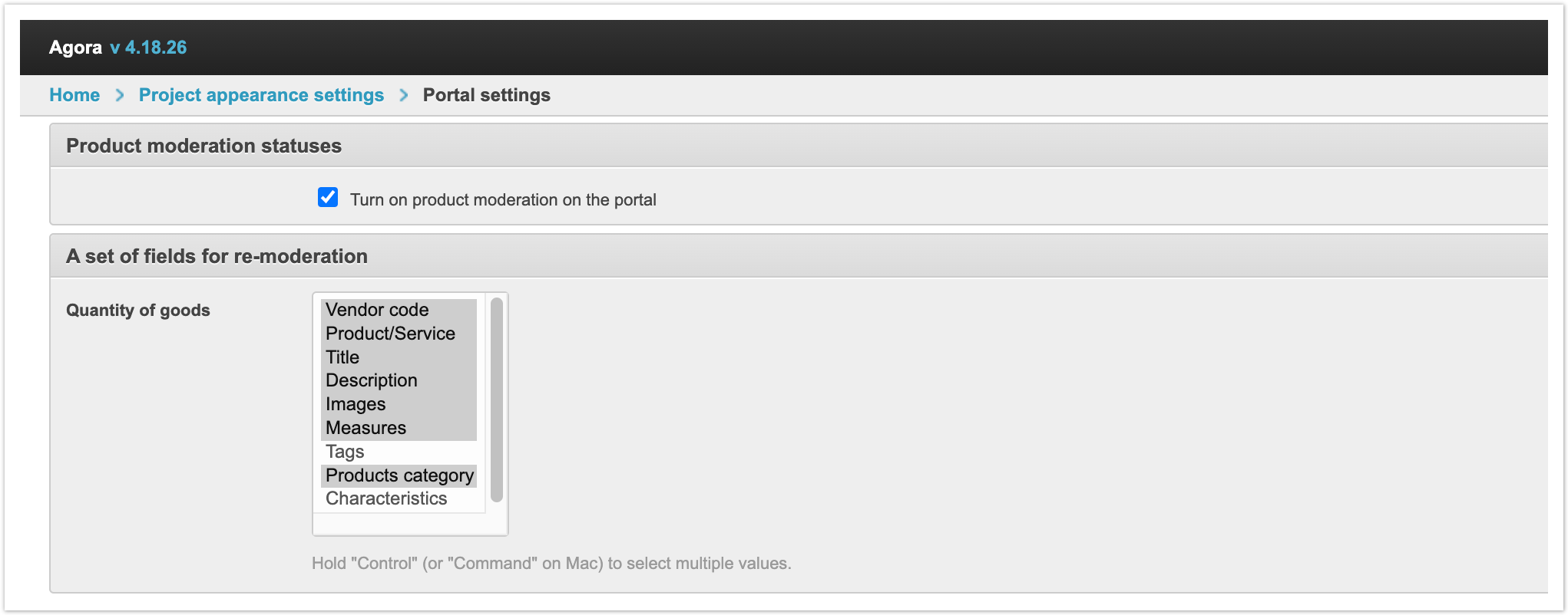 Turn on product moderation on the portal - this setting allows you to enable product moderation functionality. Product moderation is an element of the PIM system. It allows the platform manager to check the product before it is published in the buyer's catalog. Fields in the product - in this setting, you can select a set of fields for re-moderation, that is, if one of the selected fields for the product changes, it will be sent for re-moderation. Google Analytics