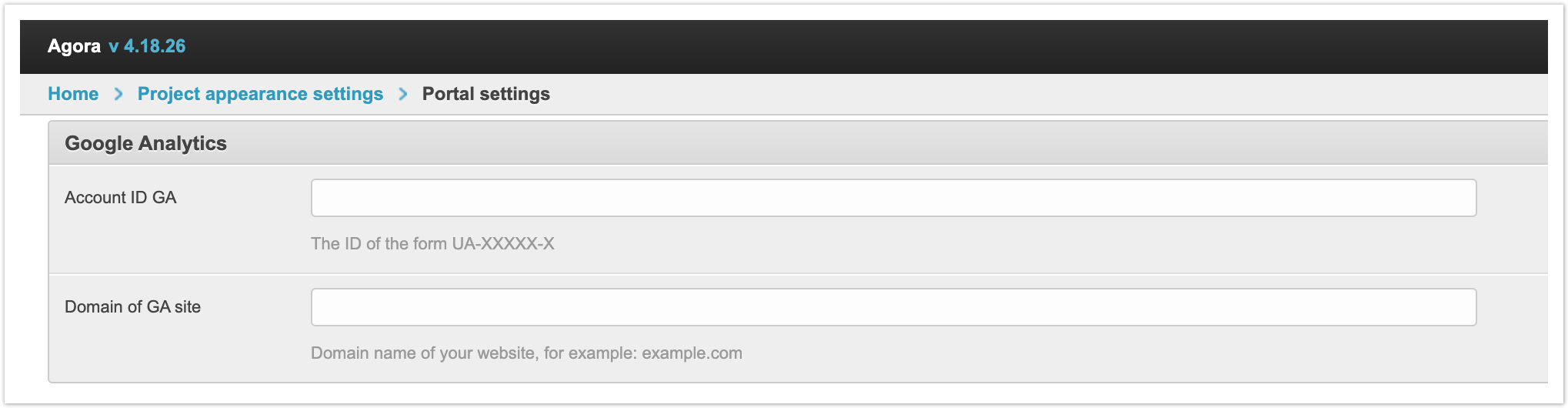 In this section, you can set up tracking site traffic statistics using Google Analytics. Here you need to specify the Account ID GA and Domain of GA site. Claim