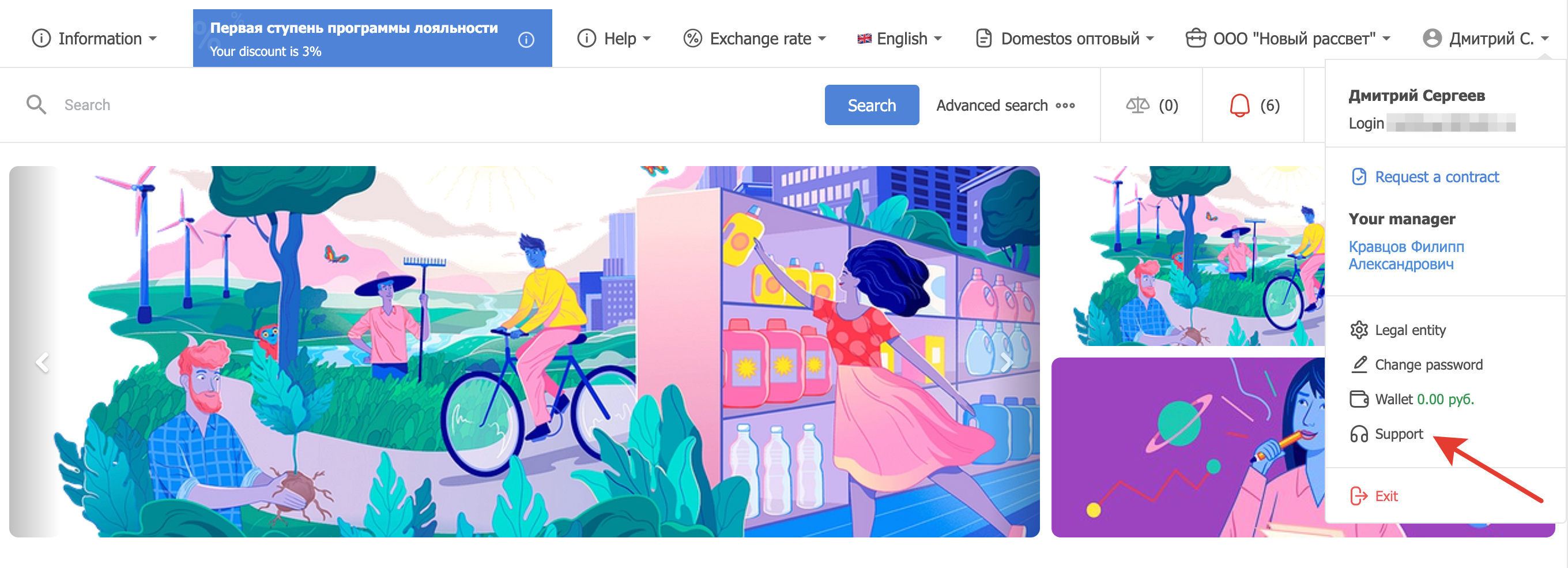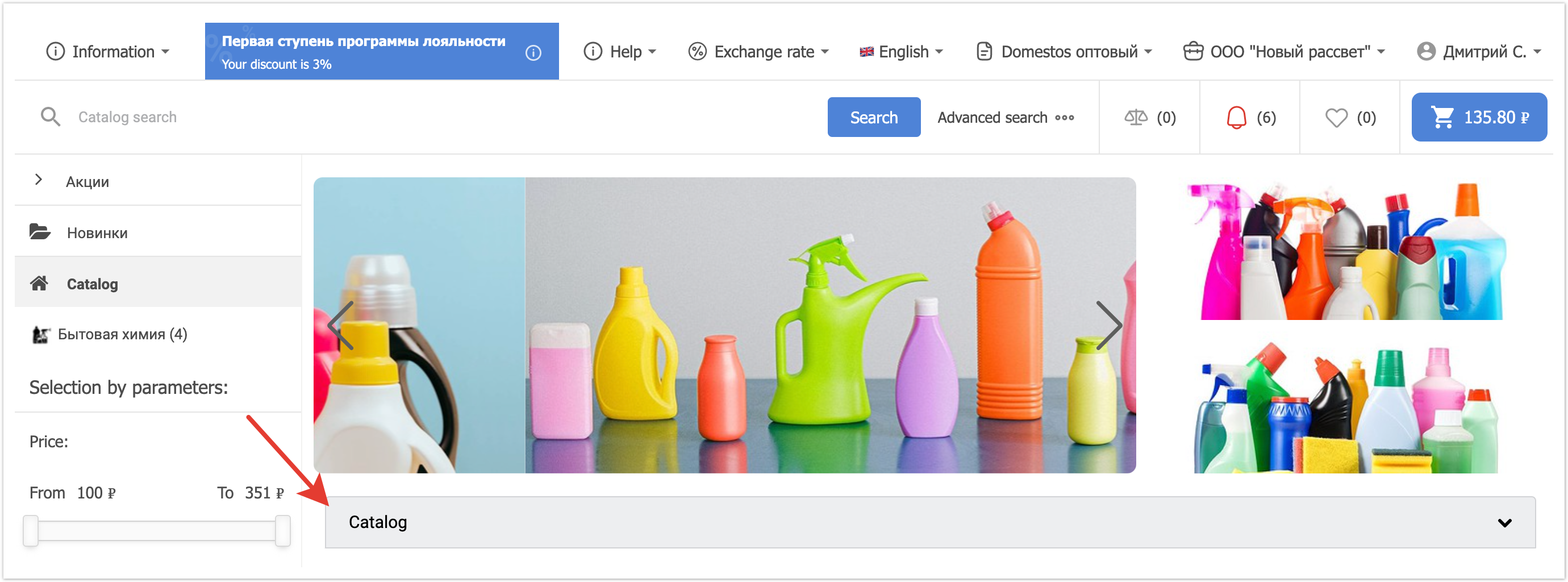 Additional panel with your content - there are three values in the drop-down list: Completely disabled, Enabled hidden by default, Enabled shown by default. Depending on the selected value, a panel with additional content can be displayed or hidden in the user's personal account. It is displayed above the categories panel. Name of the additional panel - this field specifies the name of the panel with additional content that will be displayed in the user's personal accounts. Products