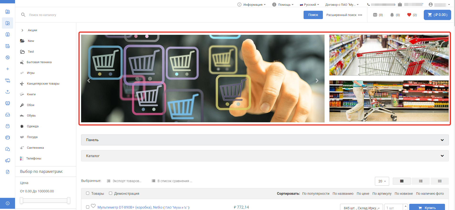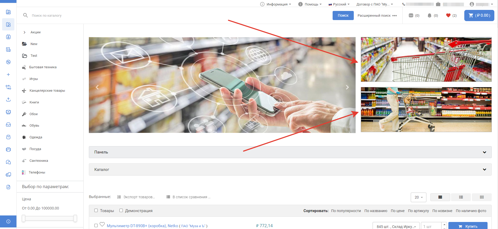 Баннеры в каталогеВ каталоге баннеры отображаются в верхней части страницы. Существует 2 типа баннеров: