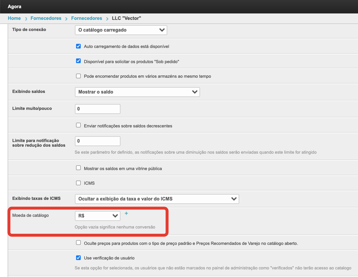 A moeda do mostrador do catálogo no portal é exibida de acordo com o conjunto de configurações que estão instaladas. A obtenção de uma moeda é determinada sequencialmente de várias maneiras. Se uma opção não for executada, então ela tenta obter o seguinte caminho e assim por diante. Formas de obter moeda: 1. Moeda do contrato entre o fornecedor e o compradorÉ indicado na seção "Compradores" no cartão de um determinado comprador no campo "Contratos". 2. O campo "Catalog currency" nas configurações do provedor.Especificado na seção "Fornecedores" do cartão de fornecedor no campo "Moeda de catálogo". 3. Sob um contrato de usuário ativo.Especificado na seção "Usuários" do cartão do usuário específico no campo "Contrato ativo". 4. A moeda do portal é definida por padrão.Especificado na seção "Moedas" do cartão de uma moeda específica na caixa de seleção "Moeda padrão".