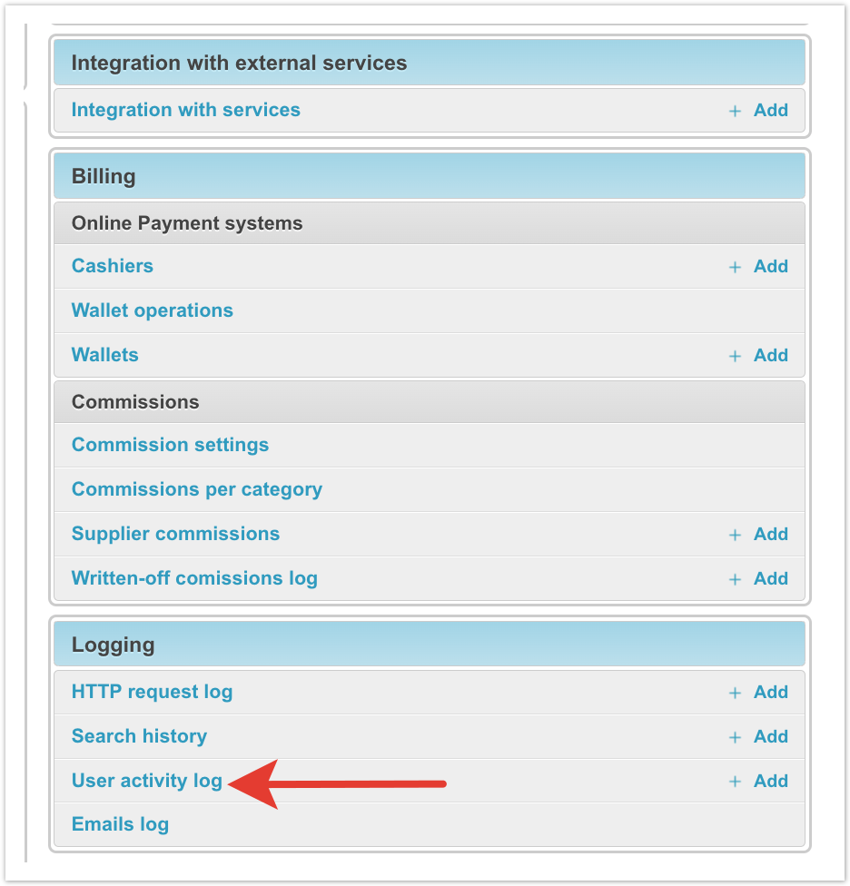 To view user actions, in the administrative panel, available at project_address.agora.ru/admin, go to the User Action Log section: The window that opens will display user actions on your project. The upper left corner of the window displays the number of user actions for the specified period. Actions can be filtered: