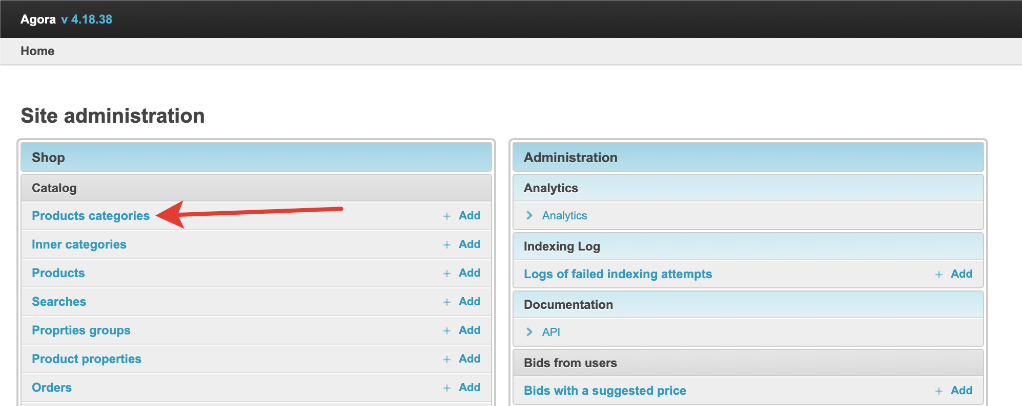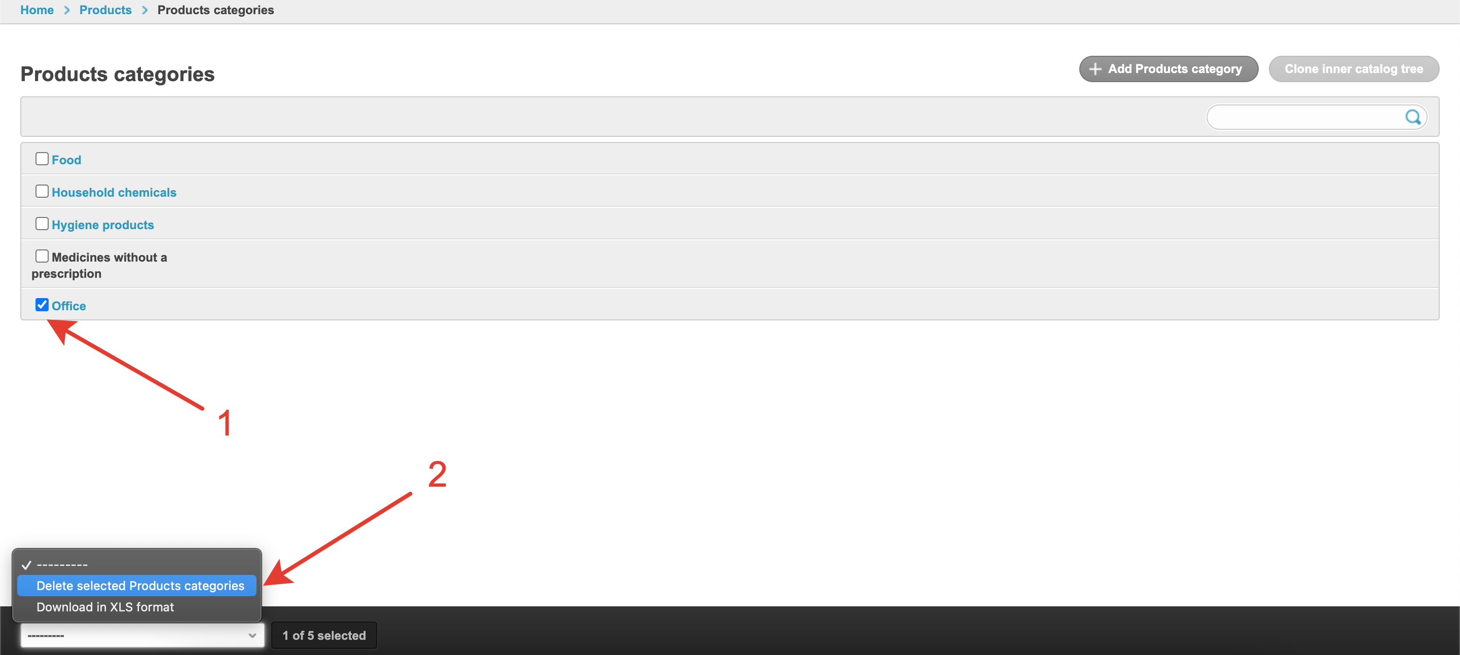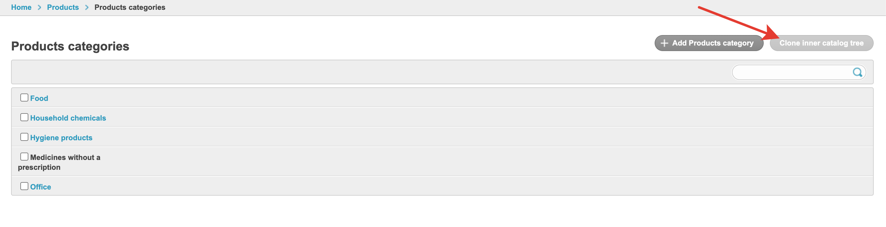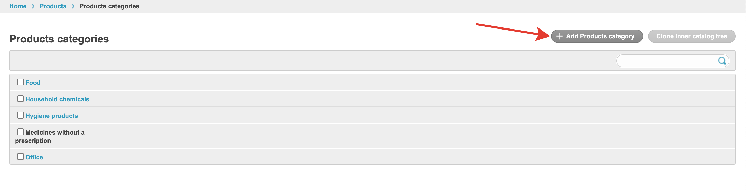 To set up platform categories, go to the Products Categories section in the admin panel. Cloning categoriesIn the Product categories section, you can create the category tree that will be displayed on the platform, or you can clone the tree of internal categories from the ERP system. Cloning the tree of internal categories is relevant mainly for B2B portals. To start the cloning process, you must click the Clone Inner catalog tree button. After the cloning process is completed, the same categories will appear in the Products Categories section as in the Inner Categories section. Adding a categoryIf the option of cloning internal categories is not suitable and you need to create a separate tree of categories on the platform, then you can add them manually. To create a category manually, you need to click on the Add Products Category button.