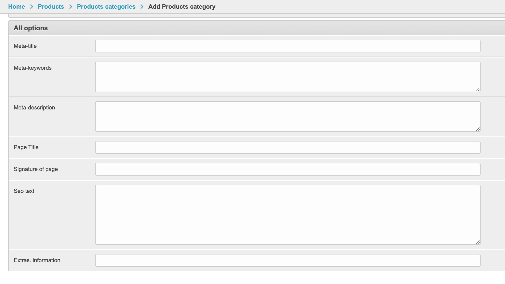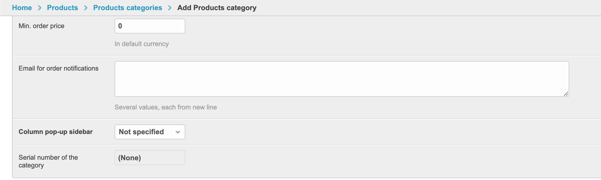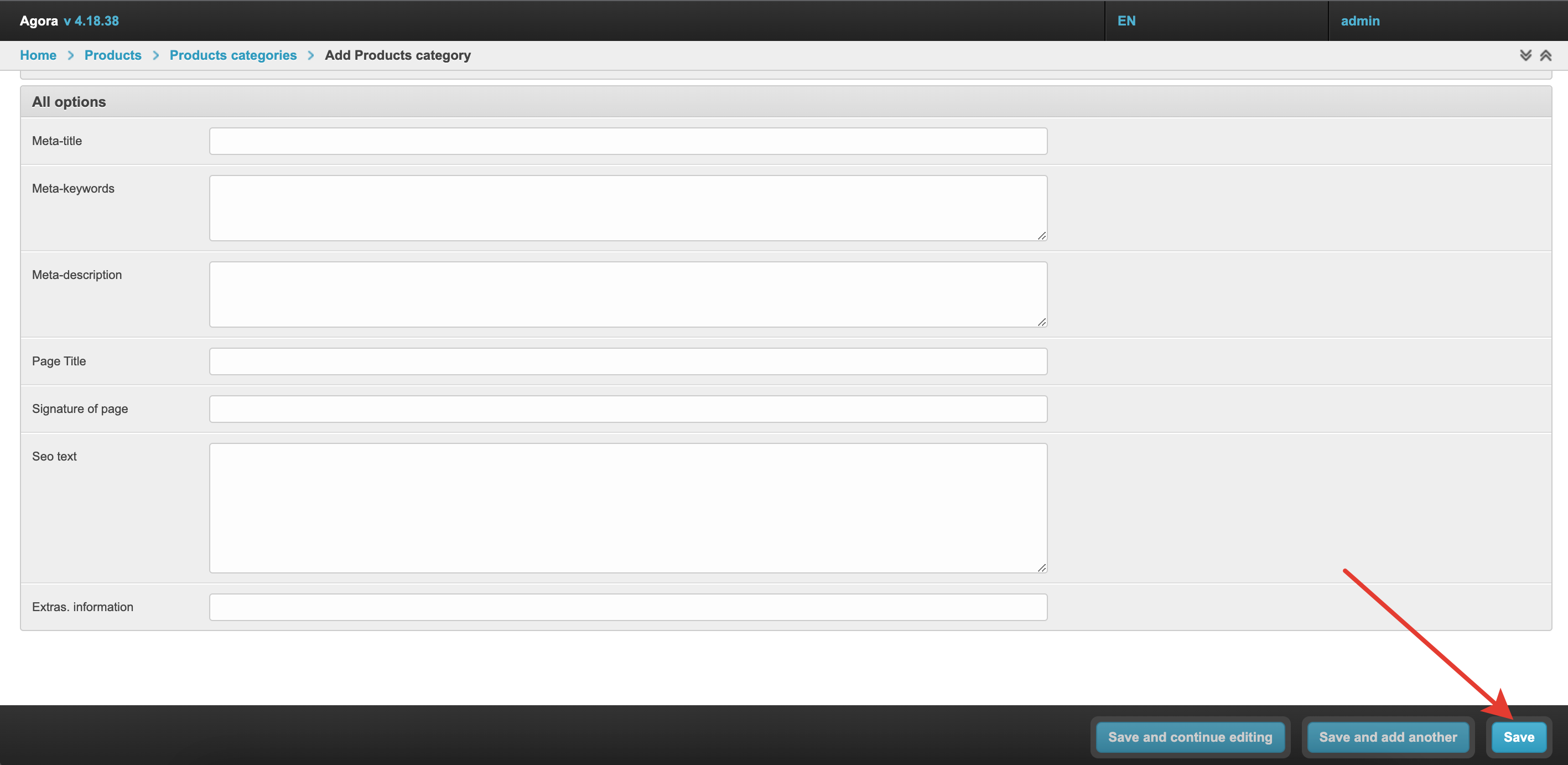 Page title, Signature of page, Seo text, Extras. information - This data can be filled in to improve the quality of search results. The completed data will not be displayed on the platform, but will be used for SEO optimization. Parent category - in this field you can specify which parent category the generated category belongs to. Filling in this field is relevant if a nested category is created that has a parent. If a top-level category is being created, then this field is not required. Name - this field contains the name of the category. It can be specified in different languages for platforms using multilingualism. The name of the category will be displayed in the personal accounts of users. Category type - in the drop-down list there are two values Product and Service. The category type determines what objects it will include - products or services. Hide category in Agora - this setting allows you to hide the product category from all users of the platform. If the setting is enabled, then the category itself and all products in this category will be hidden from buyers and suppliers. Hidden to buyers - in this field you can select specific buyers for whom the category will be hidden. This setting is used if the category should not be hidden from everyone, but only from some customers. Image - in this field you can upload an image that will be displayed next to the category in the Catalog tab in the center of the page. Inactive icon - in this field you can upload an image for an icon that will be displayed in the list of categories on the left side of the Catalog page. Active icon - in this field you can upload an image for the icon that will be displayed in the list of categories on the left side of the Catalog page, when this category is selected. Users - in this field, you can specify the users for whom the category will be available. This setting works in a similar way to the hide category setting, but the difference is that it saves time on hiding if you only need to display the category for a few users. Sap code - code for integration with SAP. Min. order price - in this field you can specify the minimum amount for ordering goods from this category. The buyer will not be able to order goods from this category for an amount less than specified in the field. Email for order notifications - in this field you can specify the email addresses to which notifications will be sent when ordering a product from this category. If you need to send notifications to several email addresses, then each address must be specified on a new line. Column pop-up sidebar - this setting is currently deprecated and will be removed in a future update. Serial number of the category - this field can display the category serial number, if it has one. This field is used when the functionality for generating internal SKUs works. Next comes the settings block with SEO parameters. In this settings block, you can specify data for search engine optimization of a product category: Meta-title, Meta-keywords, Meta-description, Page title, Signature of page, Seo text, Extras. information. This data can be filled in to improve the quality of search results. The completed data will not be displayed on the platform, but will be used for SEO optimization. After filling in all the necessary parameters, you need to save the new category. To do this, click the Save button in the lower right corner of the page. After saving, the new category will appear in the list. Changing categoriesAny category can be changed if necessary. To do this, you need to hover over the line with the category, then the Change button will appear on the right side of the line, you need to click on this button.changed if necessary. To do this, click on the category title. After that, a category card will open in which you can make changes. The available category settings were discussed above in more detail. In addition to changing the settings of the category itself, you can also change their order using the Drag-and-Drop functionality. To do this, you need to hover over the line with the category. After that, a button with three horizontal stripes will appear on the right side, just drag it your cursor over the arrow symbol and move the category to a new location. Removing categoriesTo delete a product category, select it, and then select Delete selected Products Categories from the drop-down list at the bottom left of the page. In addition to deletion, you can also Download in XLS format. After that, an XLS file with the selected categories will be generated. Categories can be configured by the platform owner through the admin panel. However, the supplier from his personal account can also perform category settings, for example, adjust their correspondence. For more information about setting up categories on the supplier side, see a separate page.