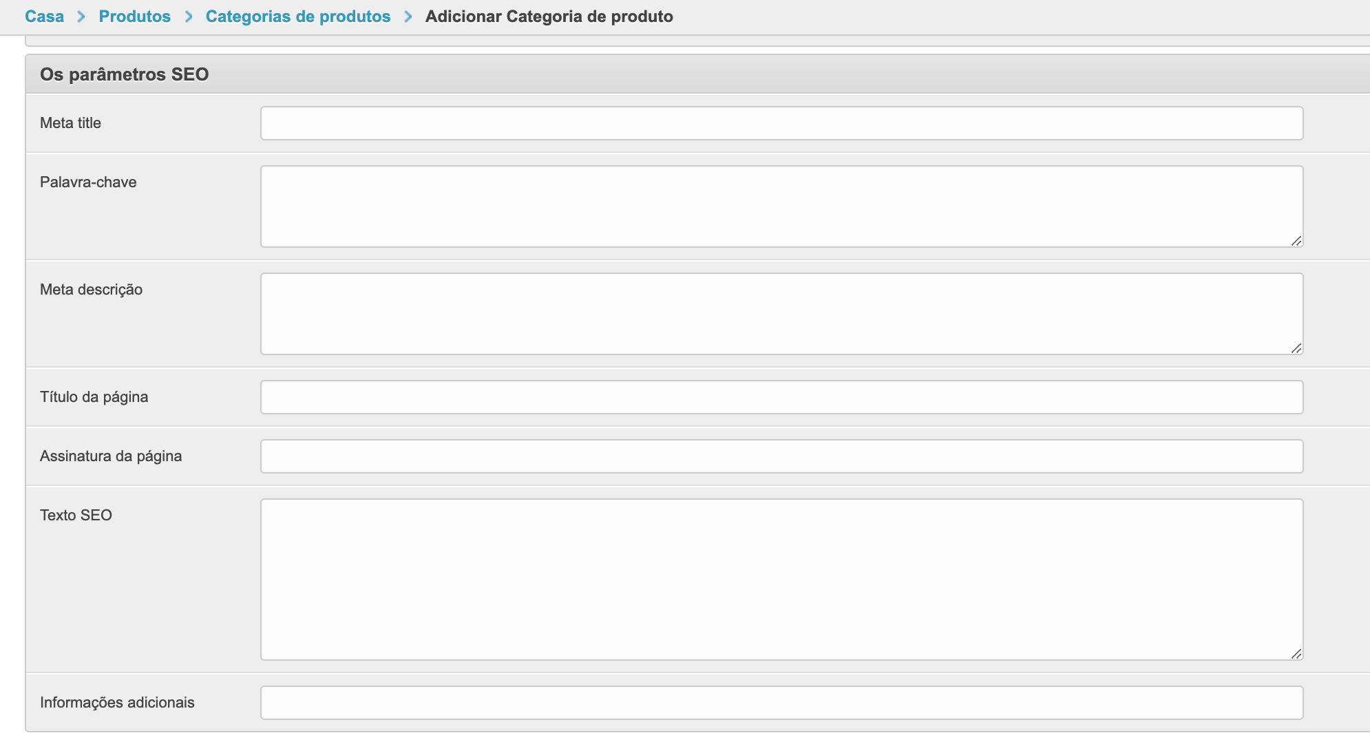 Para configurar categorias de plataforma, vá para a seção Categorias de produtos no painel de administração. Clonagem de categoriaNa seção Categorias de produtos, você pode criar a árvore de categorias que será exibida na plataforma ou clonar a árvore de categorias interna do sistema ERP. A clonagem da árvore de categorias interna é relevante principalmente para portais B2B. Para iniciar o processo de clonagem, você deve clicar no botão Clonar a árvore de Categorias Internas. Após a conclusão do processo de clonagem, as mesmas categorias aparecem na seção Categorias de Produtos como na seção Categorias Internas. Adicionar uma categoriaSe a opção de clonar categorias internas não for adequada e você precisar ter uma árvore de categorias separada na plataforma, poderá adicioná-las manualmente. Para iniciar uma categoria manualmente, você precisa clicar no botão Adicionar categoria de produto.