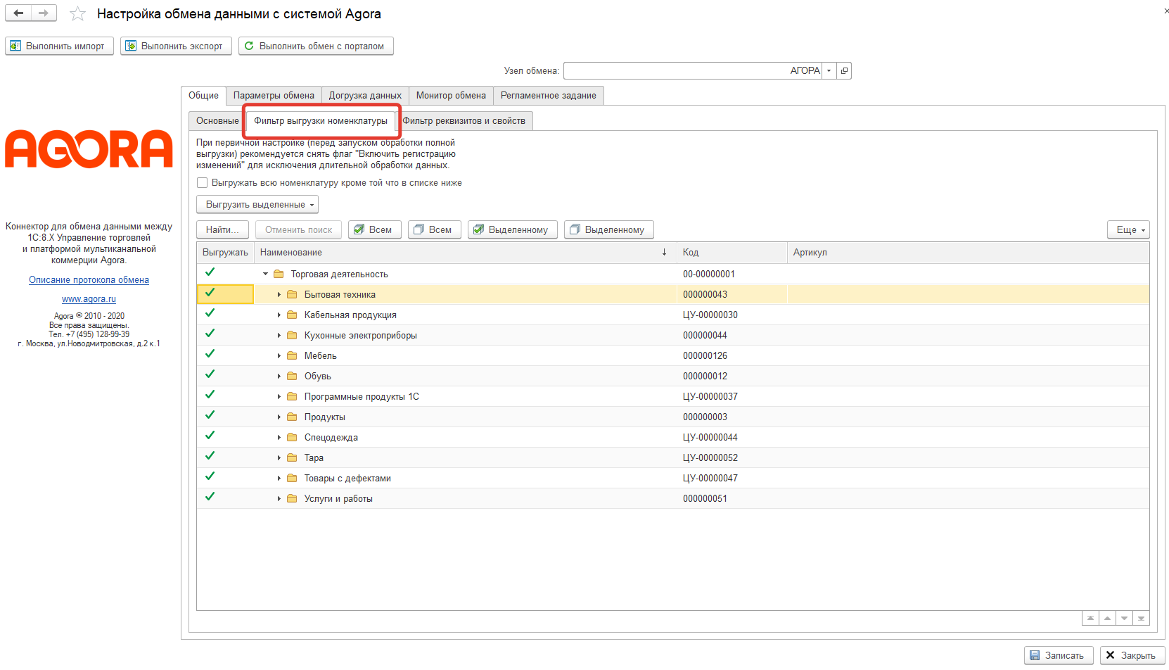 Error from the client's side: A new product is uploaded from 1C to the portal, but not recorded. To solve the problem, go to the Synchronization errors section of the administrative panel When processing a batch, an error occurs when processing an object Internal category with the text: Unable to find object SupplierCategory with external ID d67f6bc2-cb54-11e6-adb3-305a3a56b5c5 The text of the error indicates that the package is unloading a product from the 1C category, which has not been previously uploaded to the portal. Go to the exchange gateway and open the Agora processing data exchange setup Select the Item Unloading Filter tab