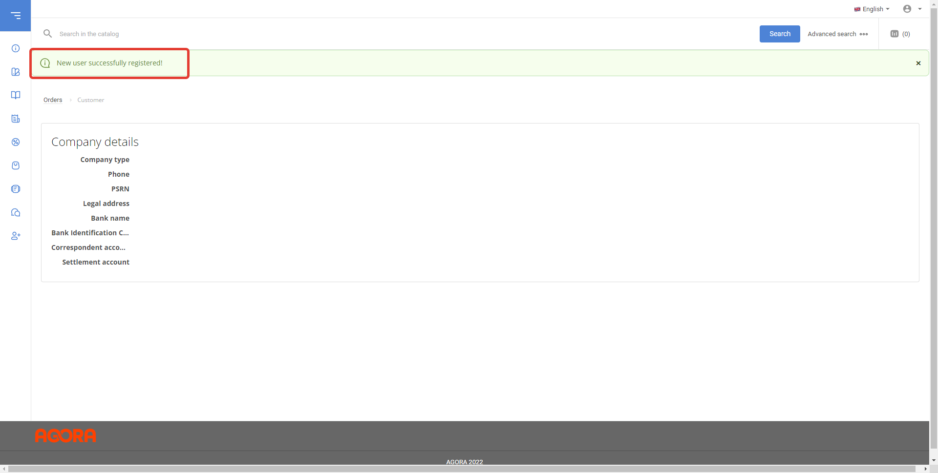 If all the data is filled in correctly, then the counterparty will be registered. A notification about successful registration will be displayed in the supplier's personal account. |