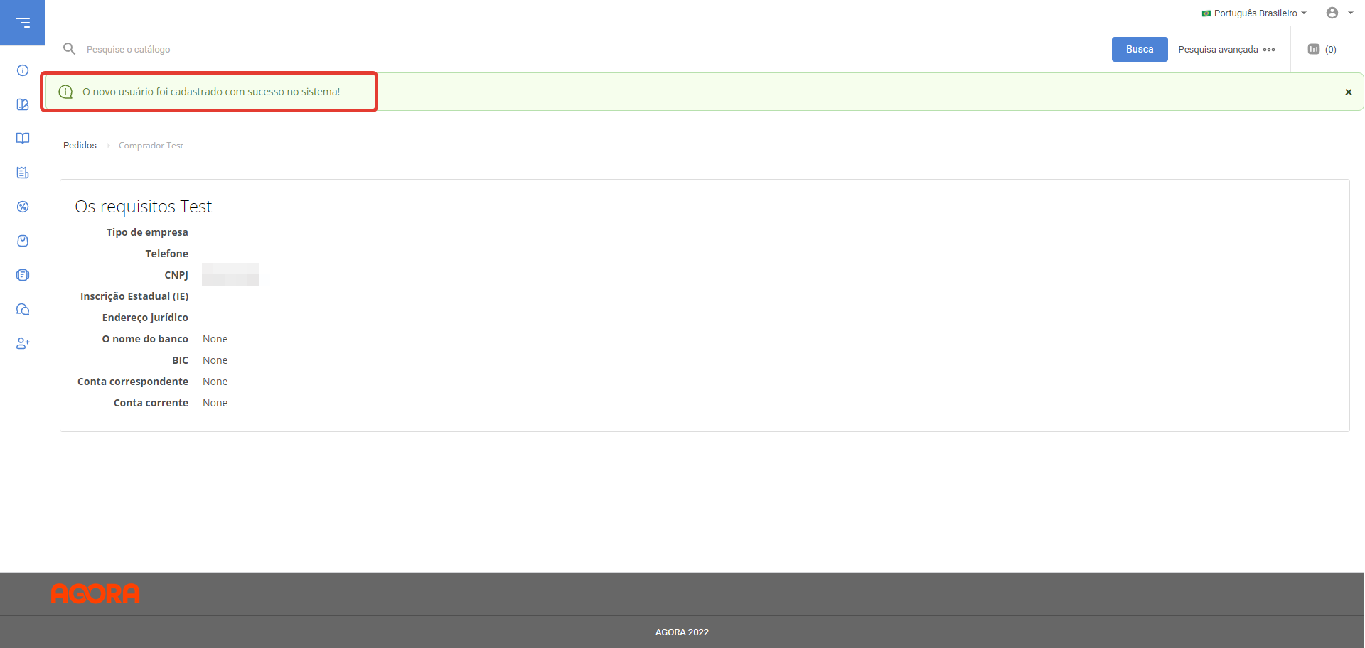 Para registrar um comprador na conta do fornecedor, acesse sua conta pessoal e clique no botão Registre um parceiro. Na janela que abre, preencha as seguintes seções para a contraparte: