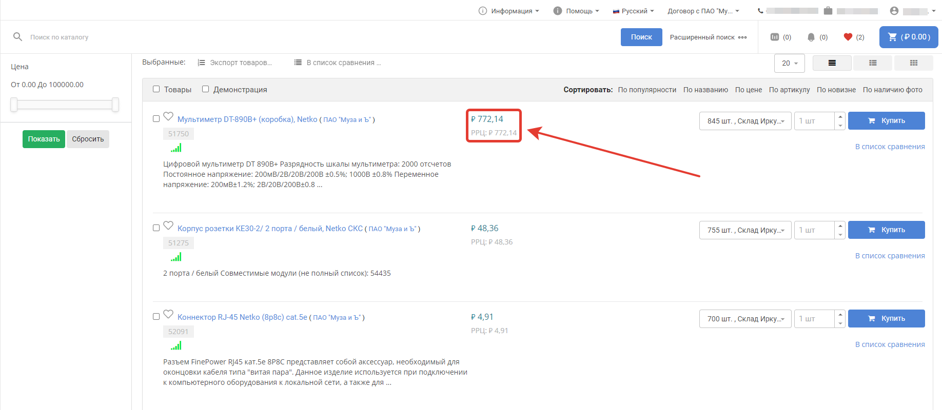The catalog demonstration mode allows you to hide in the catalog the prices of products for which they are purchased from the Supplier. This functionality can be useful when the Customer wants to demonstrate products that can be purchased, but it is required to hide the prices at which the purchase will be made. In order to use the functionality, the Customer’s user must log in to his account and go to the Catalog section.