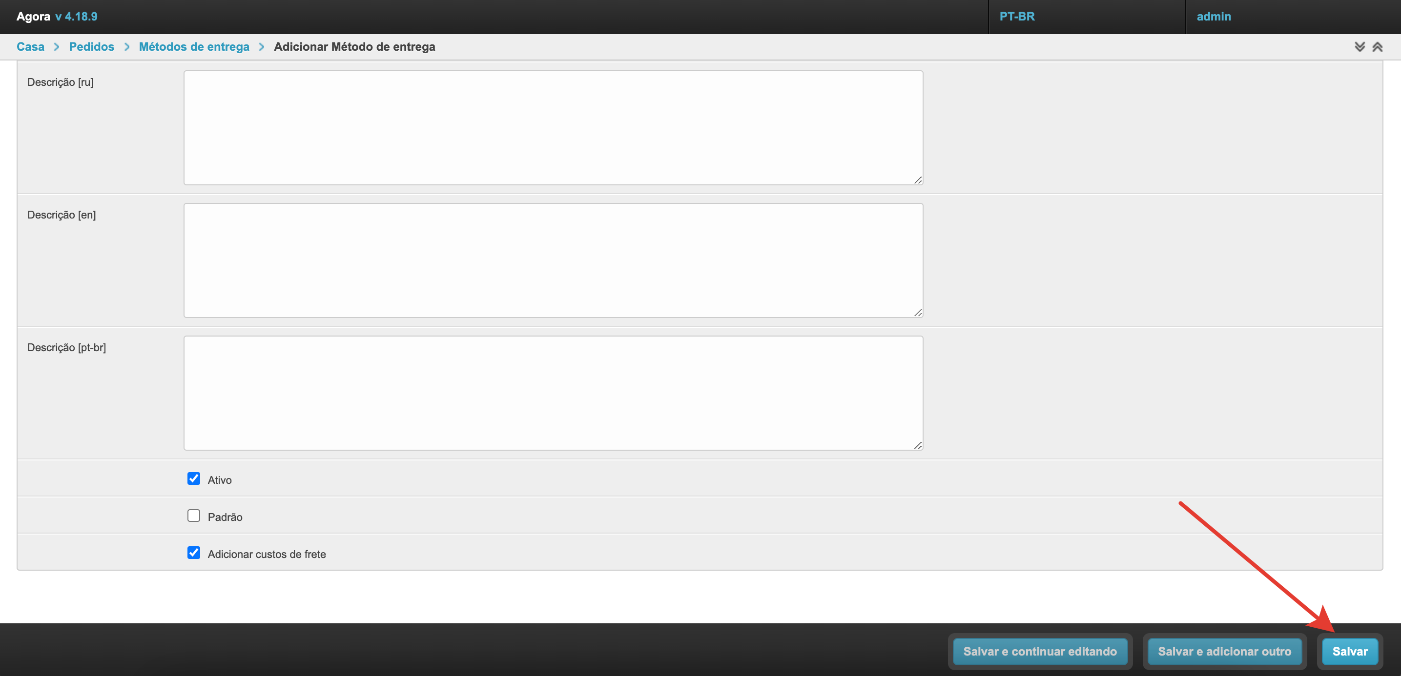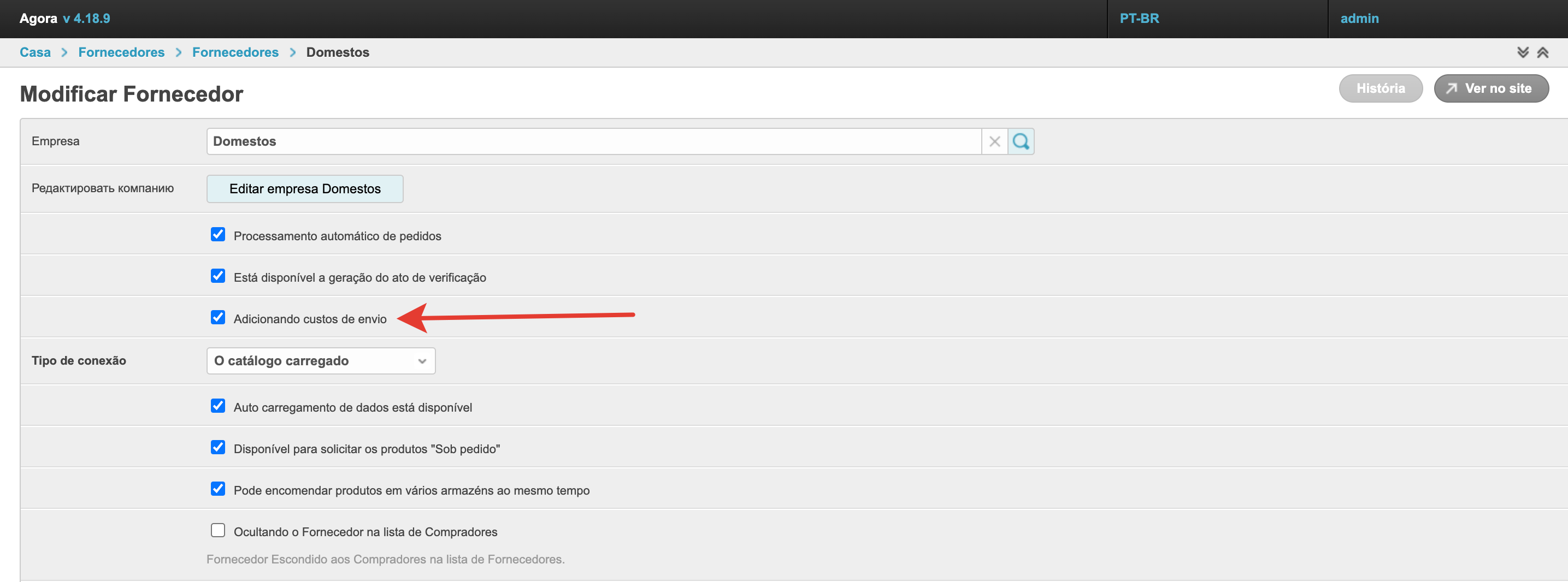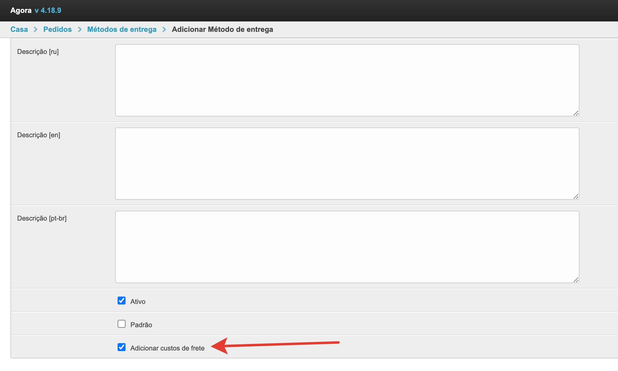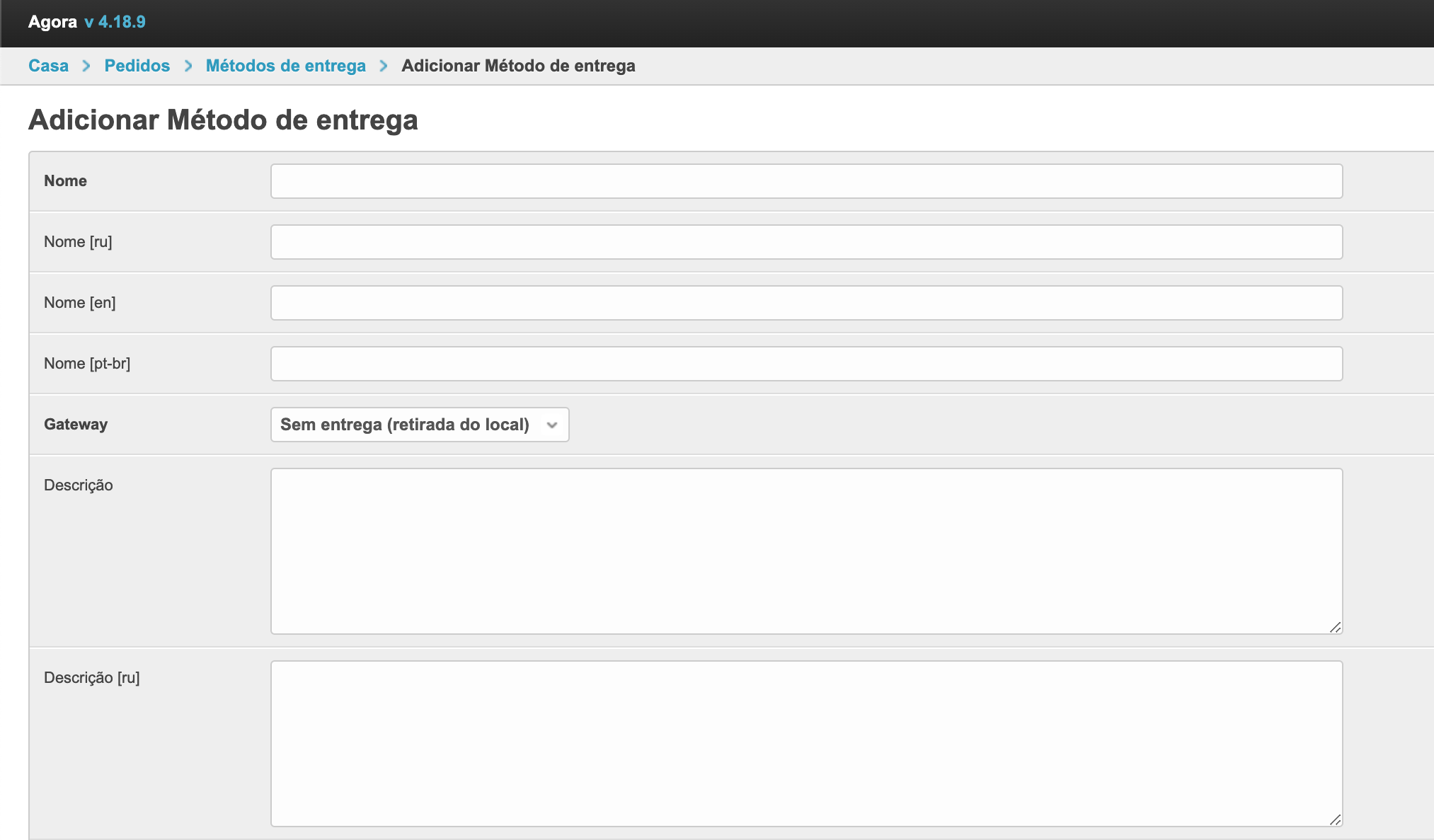 Escolher um método de entrega no carrinho de comprasSe o projeto usar vários métodos de entrega e sua seleção estiver disponível para o comprador, o campo de seleção será exibido no carrinho no checkout. Em seguida, vamos olhar para o processo de configuração de métodos de entrega. Adicione um método de envioPara configurar os métodos de entrega, há uma seção separada no painel de administração. Dentro da seção você pode ver os métodos de entrega previamente estabelecidos e seu status. A coluna Active permite entender quais métodos de entrega são usados atualmente na plataforma ao fazer um pedido. A coluna Padrão indica qual método de envio será selecionado na lixeira por padrão. Se você quiser remover um método de envio, basta selecioná-lo e, em seguida, selecionar Remover métodos de envio selecionados da parte inferior esquerda da lista de retirada. Também na página há um botão Adicionar método de entrega para o estabelecimento de um novo método de entrega. Depois de clicar nele, o formulário de ação será aberto. Aqui você precisa preencher o Nome. Ele será exibido ao comprador no checkout. O nome pode ser especificado em diferentes idiomas para plataformas usando o multilinguismo. O campo Gateway é necessário. Tem 4 significados: Sem Entrega (retirada do local), SDEC, Catapulta e Outros. As variantes SDEC e Catapulta são usadas para configurar a integração com serviços de cálculo de entrega. A opção Sem entrega é usada para coleta. Se nenhuma dessas opções for adequada, você pode selecionar Outras. Abaixo está um campo para especificar descrições também em vários idiomas, se multilíngue estiver ativado. A descrição pode ser usada para explicações adicionais. Em seguida, verifique se a configuração Active está ativada para que este método de envio possa ser usado para fazer seu pedido. Você também pode ativar a configuração Padrão, então este método de envio será substituído por padrão no checkout. Para uma operação correta, é melhor escolher um método de entrega padrão. Depois que todos os dados necessários foram preenchidos, você precisa clicar no botão Salvar e o método de entrega será adicionado. Adicionar custos de envio ao fornecedorQuando você configura um método de envio, há também uma Adicionar custos de frete. Esta configuração permite que o fornecedor adicione o custo de envio ao pedido. Para que a funcionalidade funcione nas configurações do provedor no painel administrativo, você também deve habilitar a configuração Adicionando custos de envio. Depois de habilitar essas configurações na conta pessoal do fornecedor, um campo separado aparecerá no cartão de pedido para indicar o custo de entrega de cada item individual. O custo da entrega será adicionado ao valor do pedido, e o comprador irá vê-lo e poderá pagar. Essa funcionalidade permite adicionar o custo de entrega ao valor do pedido e tornar o pagamento mais conveniente para o comprador. Integração com serviços logísticosPara métodos de entrega há integrações prontas com o SDEС e com Сatapulta. Se necessário, integrações com outros serviços logísticos podem ser configuradas como uma solução individual. A integração com o SDEС funciona de tal forma que, após fazer um pedido, o comprador será redirecionado para a página de serviços SDEС para entrega. A integração com Сatapulta funciona de forma semelhante. Após a ção, o comprador será apresentado um formulário de cálculo de entrega, onde será necessário preencher o endereço de envio e recebimento, bem como o tipo de remessa. Em seguida, os parâmetros por tamanho, peso e configurações adicionais são preenchidos. Depois de clicar no botão de cálculo, todas as opções de entrega disponíveis e seu custo serão oferecidos. Você pode escolher qualquer opção que quiser. O trabalho de Catapulta é descrito com mais detalhes na página.
