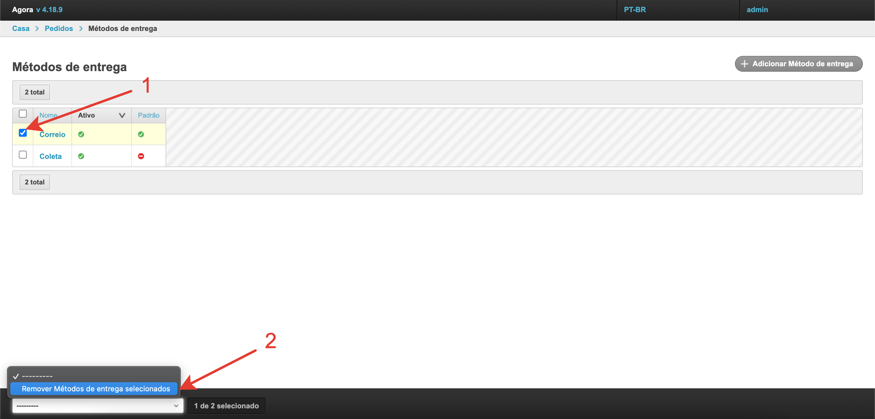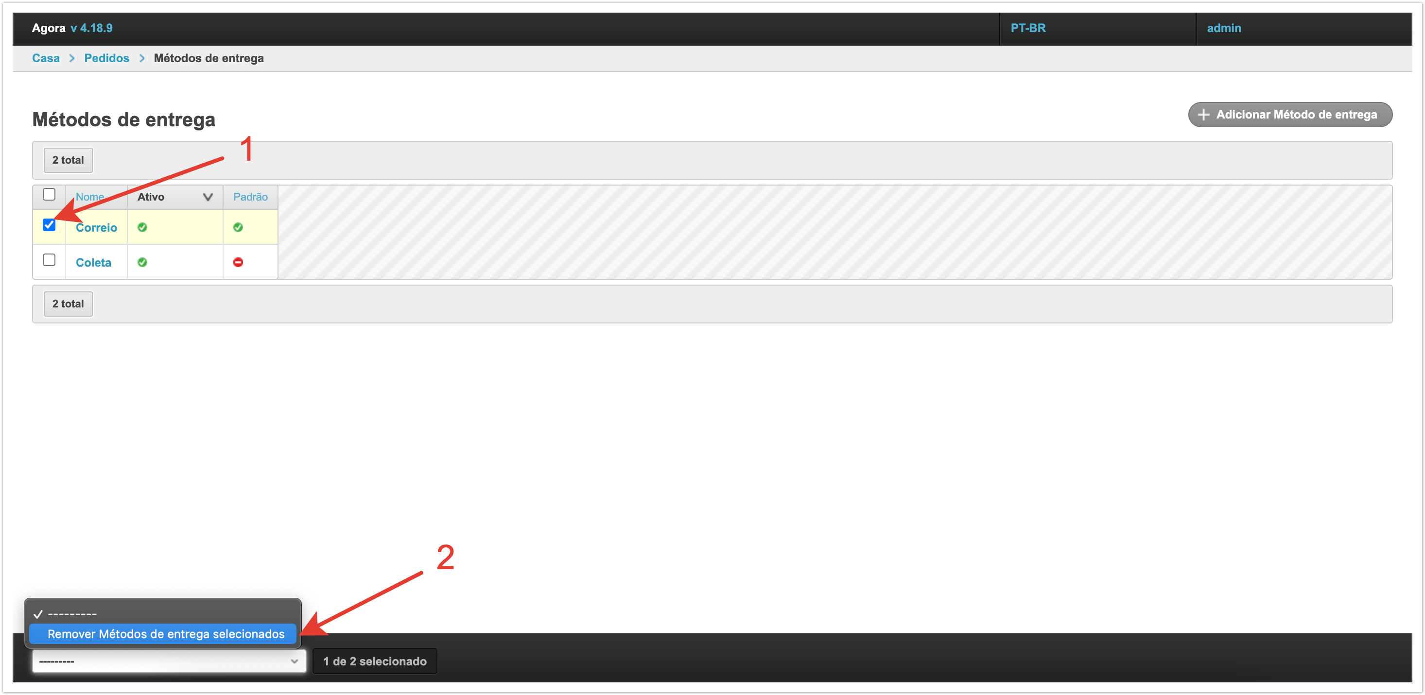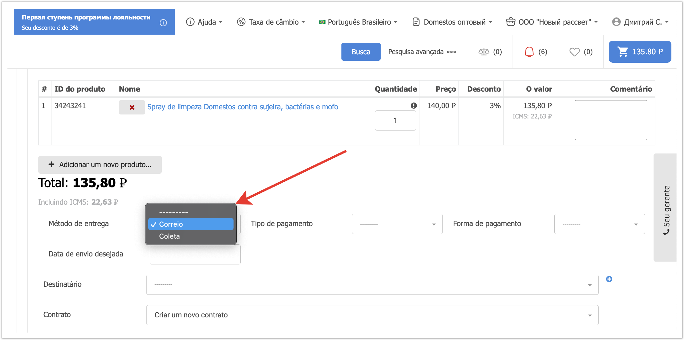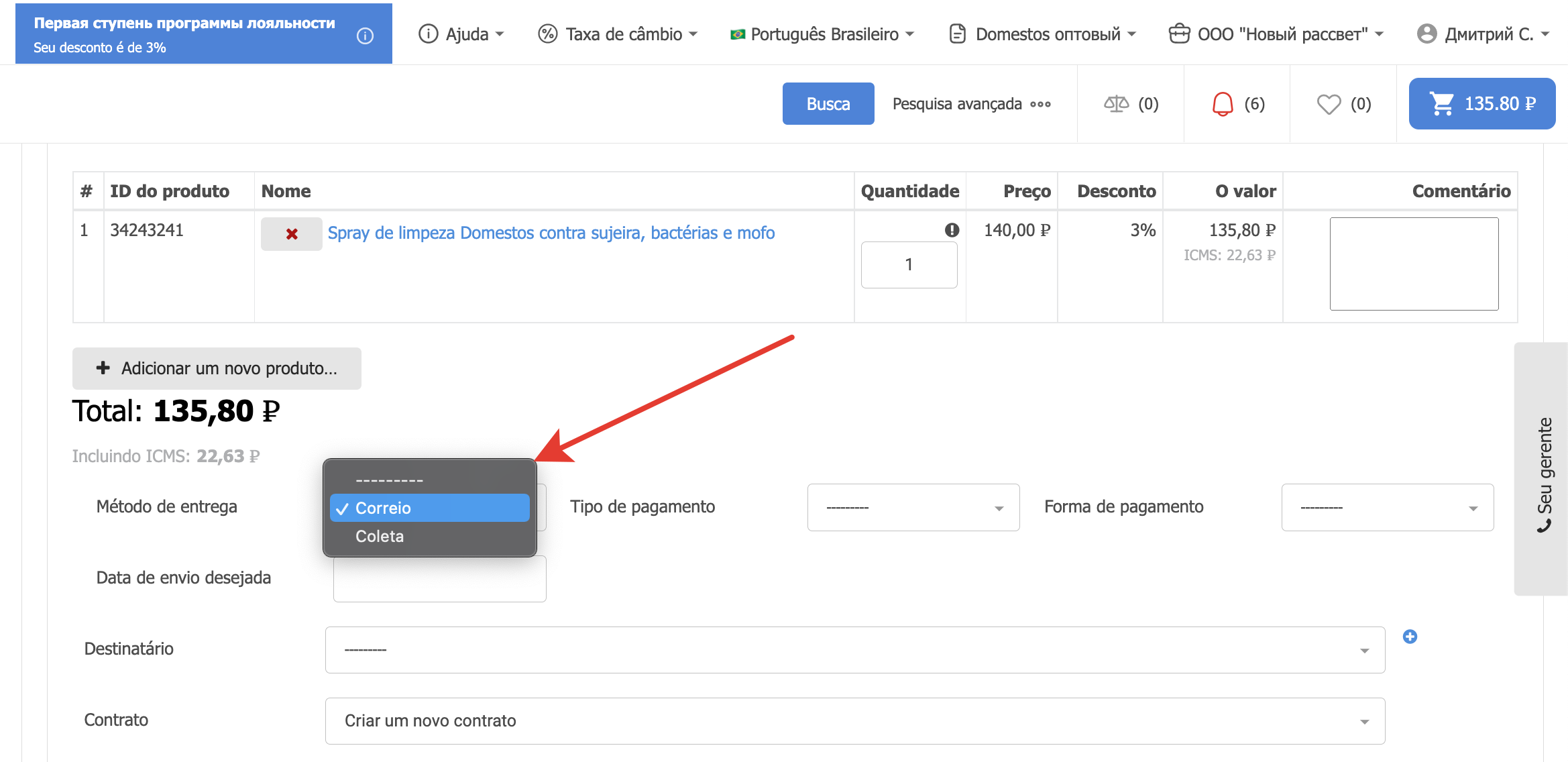 Escolher um método de entrega no carrinho de comprasSe o projeto usar vários métodos de entrega e sua seleção estiver disponível para o comprador, o campo de seleção será exibido no carrinho no checkout. Em seguida, vamos olhar para o processo de configuração de métodos de entrega. Adicione um método de envioPara configurar os métodos de entrega, há uma seção separada no painel de administração. Dentro da seção você pode ver os métodos de entrega previamente estabelecidos e seu status. A coluna Active permite entender quais métodos de entrega são usados atualmente na plataforma ao fazer um pedido. A coluna Padrão indica qual método de envio será selecionado na lixeira por padrão. Se você quiser remover um método de envio, basta selecioná-lo e, em seguida, selecionar Remover métodos de envio selecionados da parte inferior esquerda da lista de retirada. Também na página há um botão Adicionar método de entrega para o estabelecimento de um novo método de entrega. Depois de clicar nele, o formulário de ação será aberto. Aqui você precisa preencher o Nome. Ele será exibido ao comprador no checkout. O nome pode ser especificado em diferentes idiomas para plataformas usando o multilinguismo. O campo Gateway é necessário. Tem 4 significados: Sem Entrega (retirada do local), SDEC, Catapulta e Outros. As variantes SDEC e Catapulta são usadas para configurar a integração com serviços de cálculo de entrega. A opção Sem entrega é usada para coleta. Se nenhuma dessas opções for adequada, você pode selecionar Outras. Abaixo está um campo para especificar descrições também em vários idiomas, se multilíngue estiver ativado. A descrição pode ser usada para explicações adicionais. Em seguida, verifique se a configuração Active está ativada para que este método de envio possa ser usado para fazer seu pedido. Você também pode ativar a configuração Padrão, então este método de envio será substituído por padrão no checkout. Para uma operação correta, é melhor escolher um método de entrega padrão. Depois que todos os dados necessários foram preenchidos, você precisa clicar no botão Salvar e o método de entrega será adicionado. Adicionar custos de envio ao fornecedorQuando você configura um método de envio, há também uma Adicionar custos de frete. Esta configuração permite que o fornecedor adicione o custo de envio ao pedido. Para que a funcionalidade funcione nas configurações do provedor no painel administrativo, você também deve habilitar a configuração Adicionando custos de envio. Depois de habilitar essas configurações na conta pessoal do fornecedor, um campo separado aparecerá no cartão de pedido para indicar o custo de entrega de cada item individual. O custo da entrega será adicionado ao valor do pedido, e o comprador irá vê-lo e poderá pagar. Essa funcionalidade permite adicionar o custo de entrega ao valor do pedido e tornar o pagamento mais conveniente para o comprador. Integração com serviços logísticosPara métodos de entrega há integrações prontas com o SDEС e com Сatapulta. Se necessário, integrações com outros serviços logísticos podem ser configuradas como uma solução individual. A integração com o SDEС funciona de tal forma que, após fazer um pedido, o comprador será redirecionado para a página de serviços SDEС para entrega. A integração com Сatapulta funciona de forma semelhante. Após a ção, o comprador será apresentado um formulário de cálculo de entrega, onde será necessário preencher o endereço de envio e recebimento, bem como o tipo de remessa. Em seguida, os parâmetros por tamanho, peso e configurações adicionais são preenchidos. Depois de clicar no botão de cálculo, todas as opções de entrega disponíveis e seu custo serão oferecidos. Você pode escolher qualquer opção que quiser. O trabalho de Catapulta é descrito com mais detalhes na página.