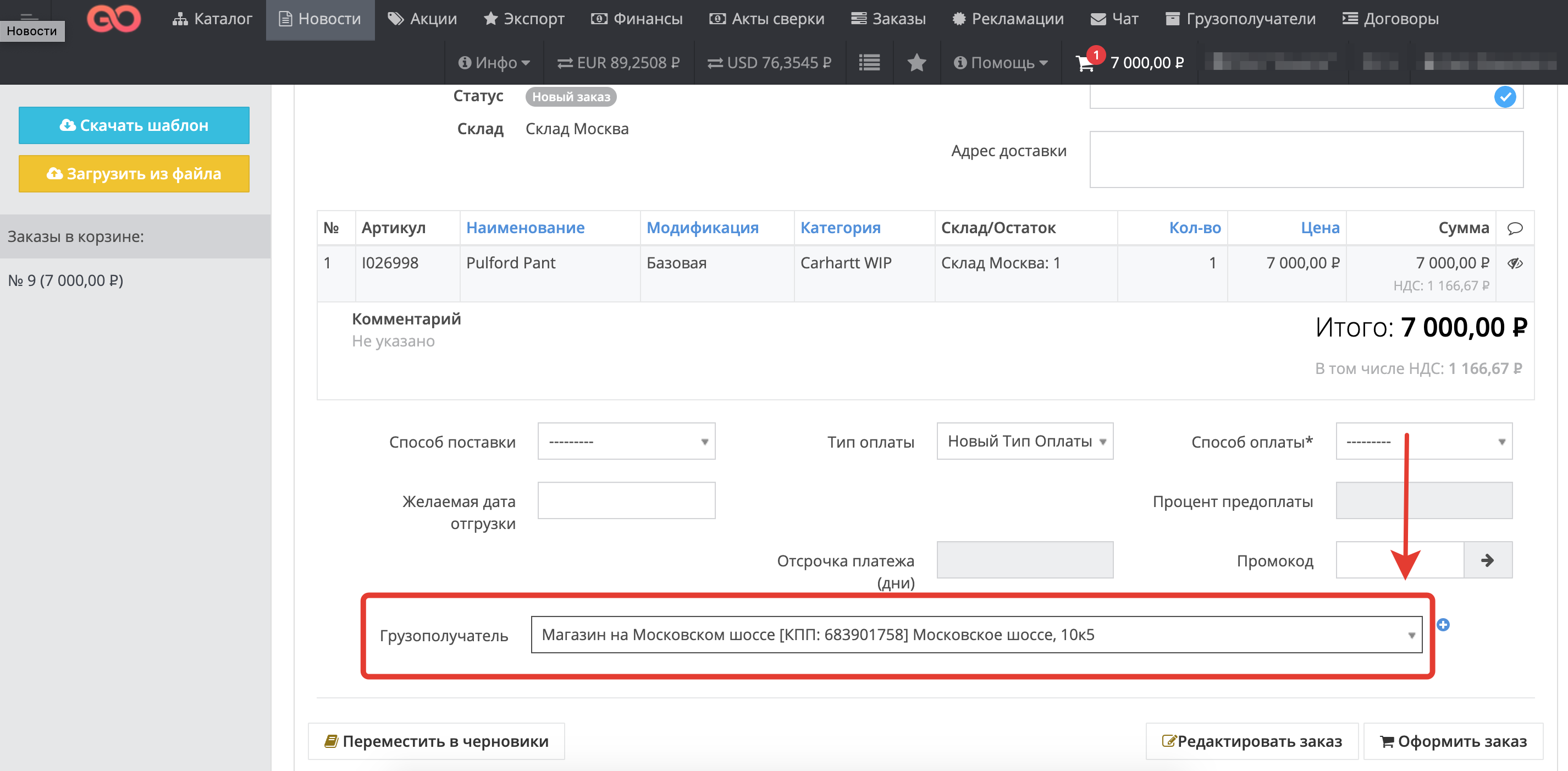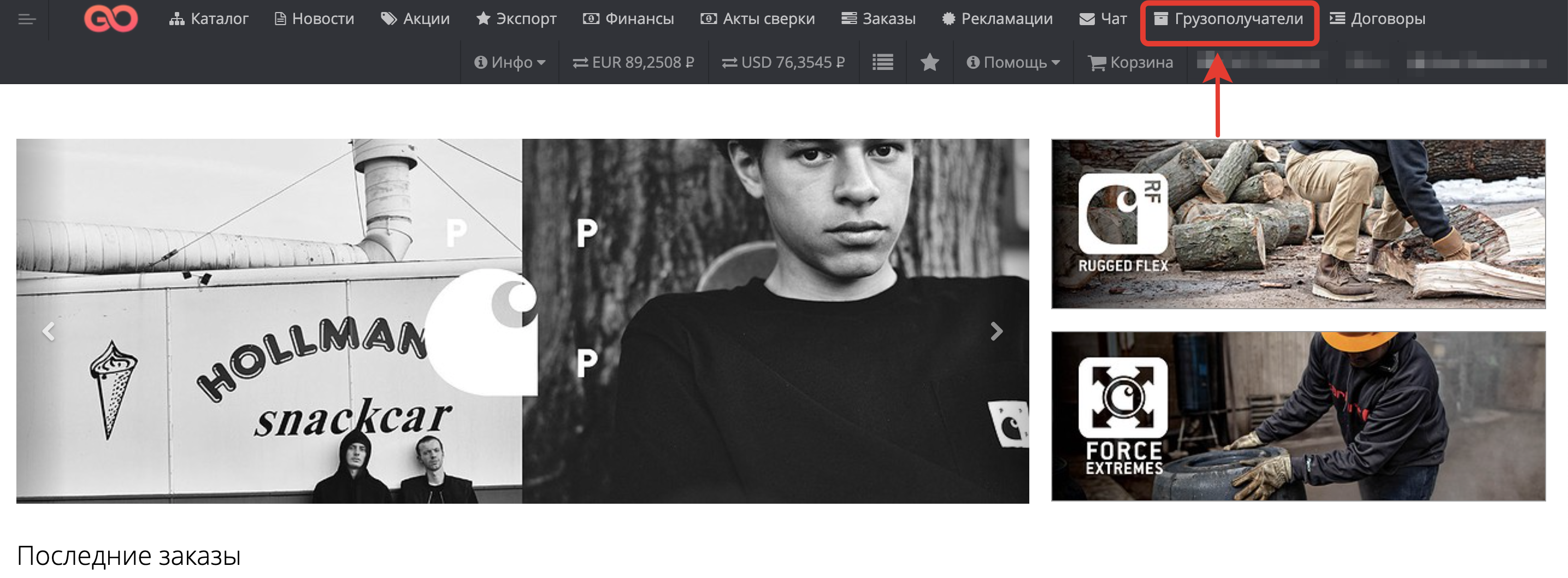 Настройка грузополучателей в личном кабинетеВ личном кабинете покупателя, расположенном по адресу название_проекта.agora.ru, работа с разделом Грузополучатели строится следующим образом: На панели справа нажмите на значок . После открытия раздела Грузополучатели нажмите кнопку Добавить нового: Далее необходимо заполнить все реквизиты (название, город, адрес и проч.) и нажать на кнопку Сохранить: Добавление грузополучателя также возможно через панель администратора. Этот процесс описан на отдельной странице. Применение созданных шаблонов при оформлении заказаВсе грузополучатели покупателя будут доступны в в выпадающем списке, чтобы была возможность выбрать необходимый шаблон: В оформленном заказе также будет отображаться информация о грузополучателе: |
