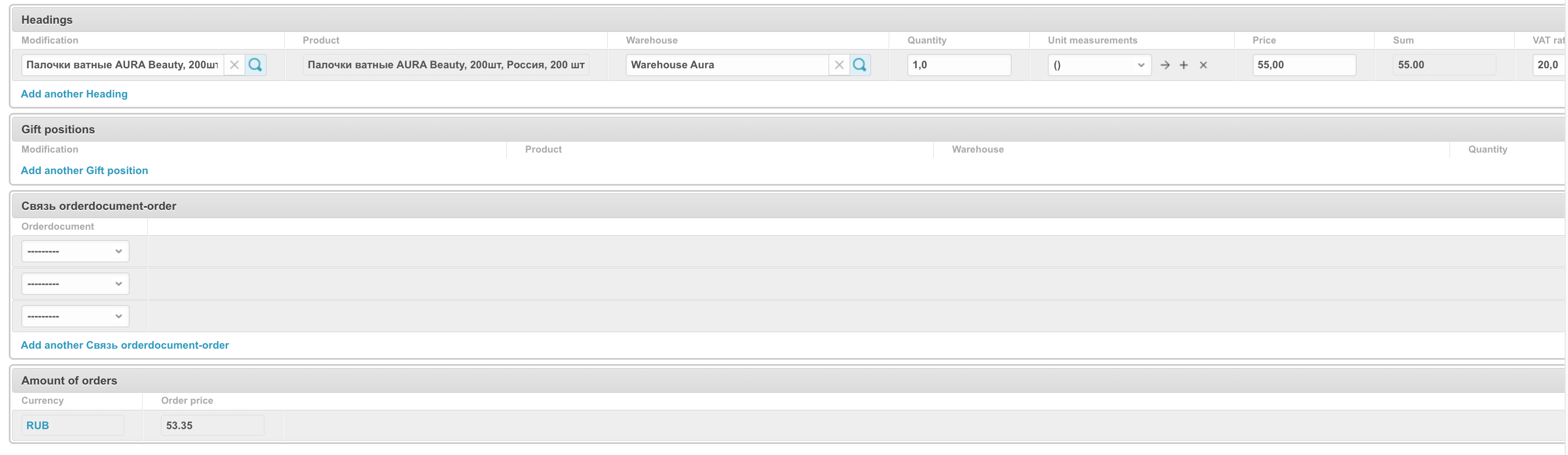 Связь orderdocument-order - хранимые в рамках заказа документы Суммы заказов - в этом блоке указана валюта и сумма заказа.