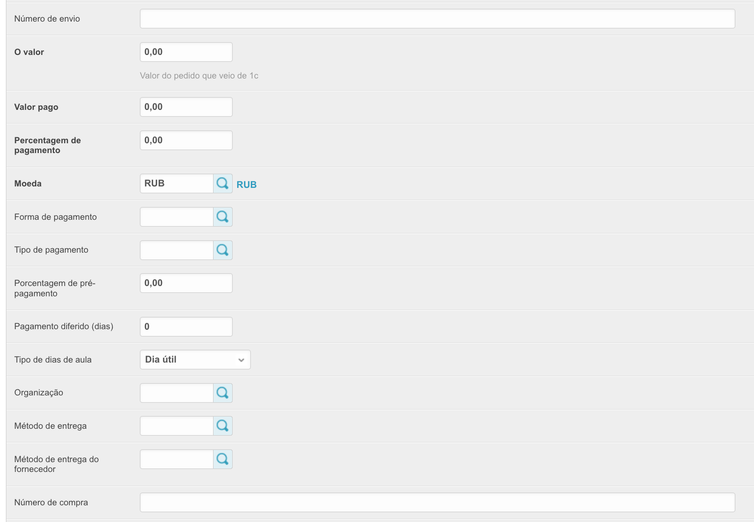 Связь orderdocument-order - Documentos armazenados dentro do pedido. Valores do pedido - este bloco contém a moeda e o valor do pedido.