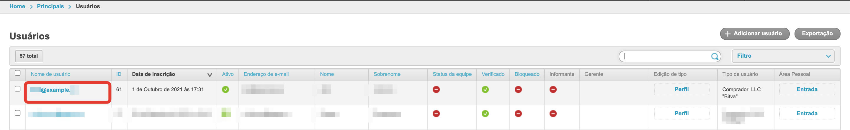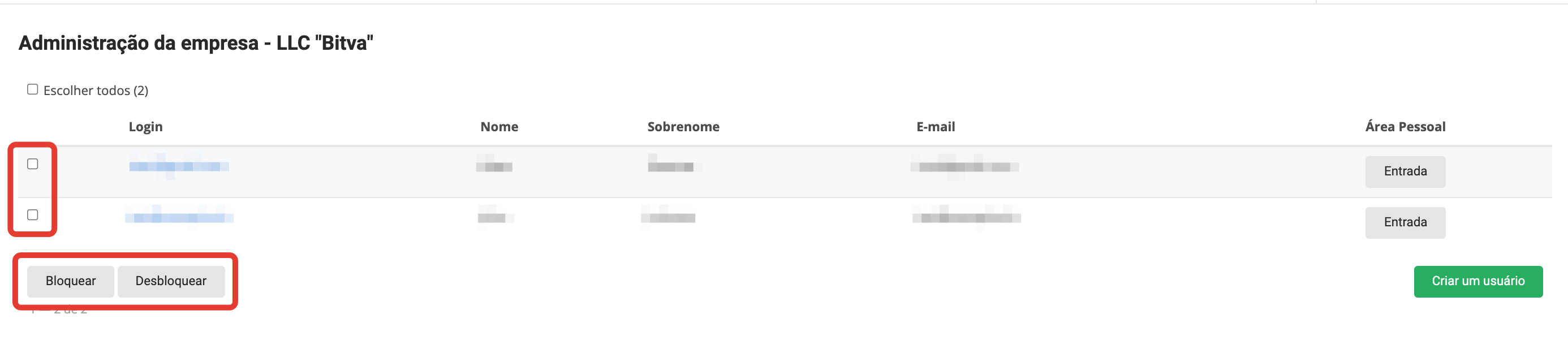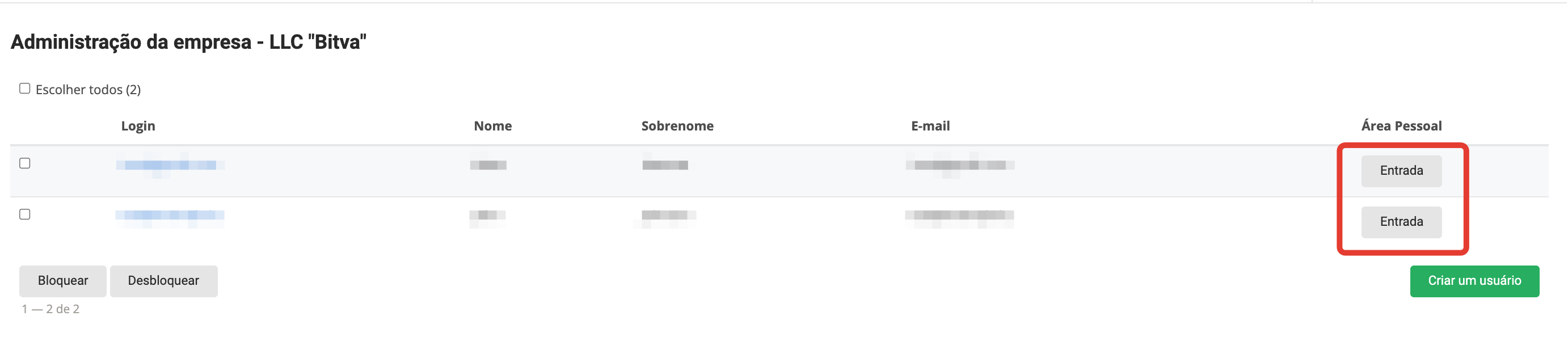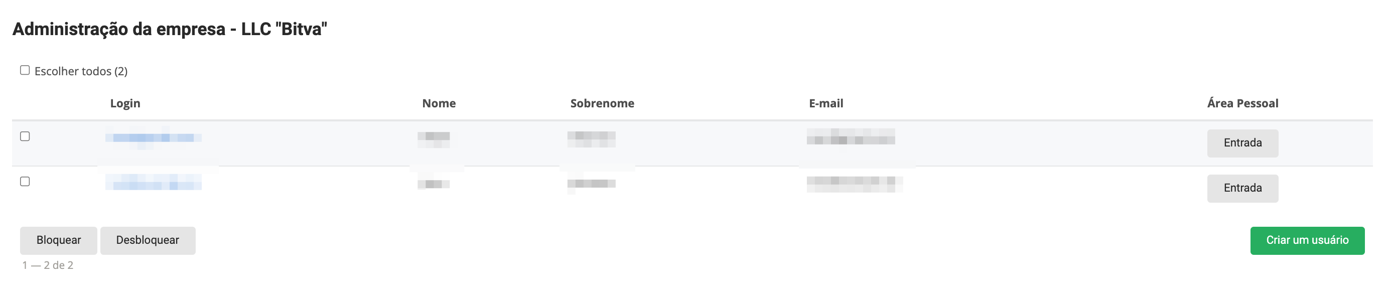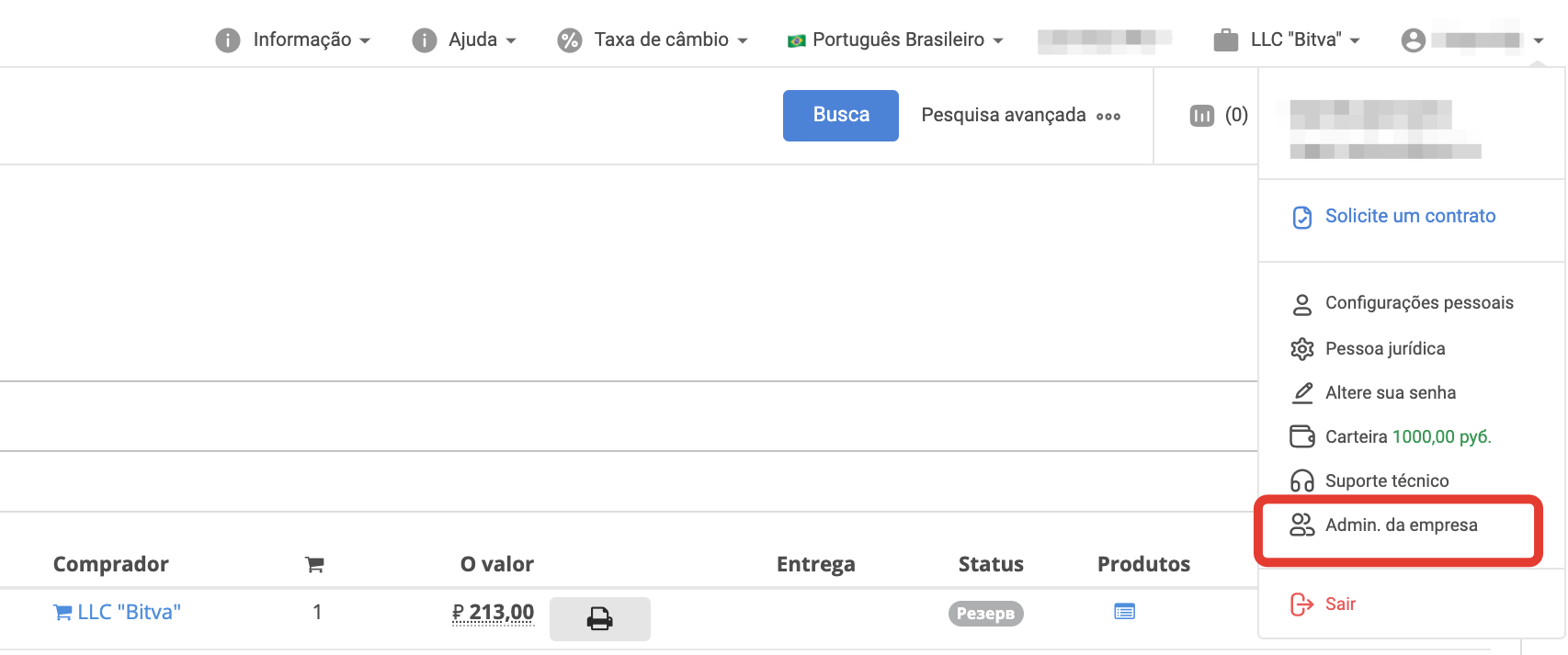 Uma vez logado, vá para a seção Usuários: Selecione o usuário desejado a quem deseja oferecer a oportunidade de iniciar usuários associados ao comprador e vá para a página de configurações clicando no login: Na seção Direitos de acesso, defina a caixa de seleção do administrador da empresa e clique em Salvar: No menu desta conta pessoal haverá uma seção de administradores.Empresas: Para criar um novo Usuário, clique no botão Criar usuário: Em seguida, você precisa preencher os dados do usuário: Após salvar os dados, uma notificação da criação bem sucedida do Usuário será exibida: Clicar no botão Voltar a Lista abrirá uma página com uma lista de usuários criados através desta conta: O usuário também está disponível na seção Usuários do painel administrativo do projeto: O usuário terá acesso à funcionalidade usual da conta pessoal do Comprador. O administrador da empresa pode bloquear e desbloquear usuários criados na seção Administração da Empresa: O administrador da empresa pode fazer login na conta criada do usuário da empresa usando o botão Login Entrada no bloco Minha Conta Área Pessoal: |