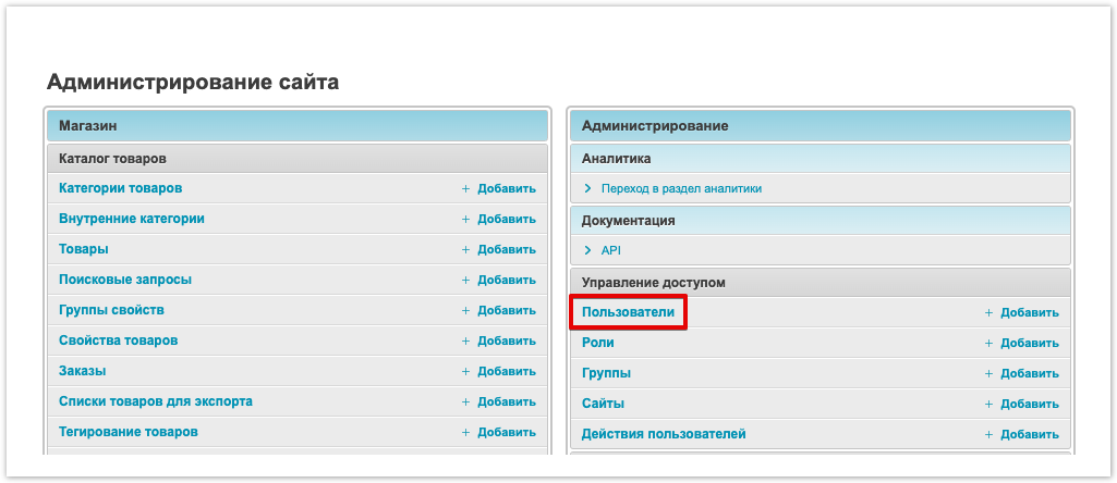 Данная настройка позволяет назначить пользователя компании администратором и дать ему возможность регистрировать других пользователей для этой компании. Авторизовавшись, перейдите в раздел Пользователи: