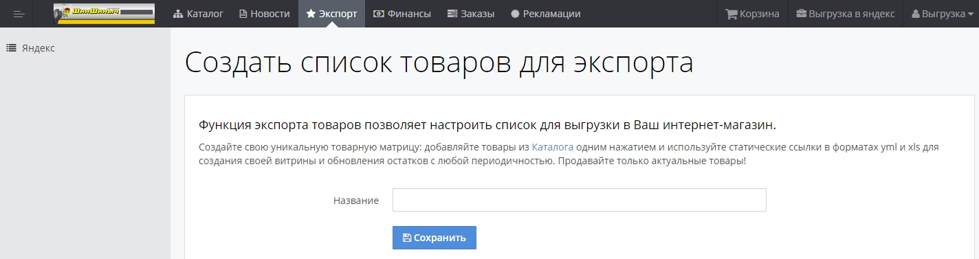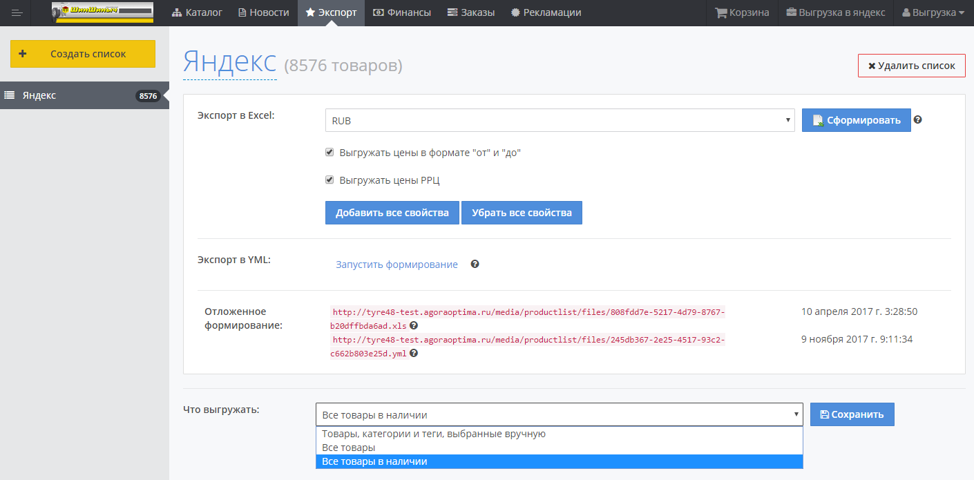 The customer can create any list of goods and export it in XLS, CSV format or in the form of YML (active updated links), for which you need to perform the following steps: