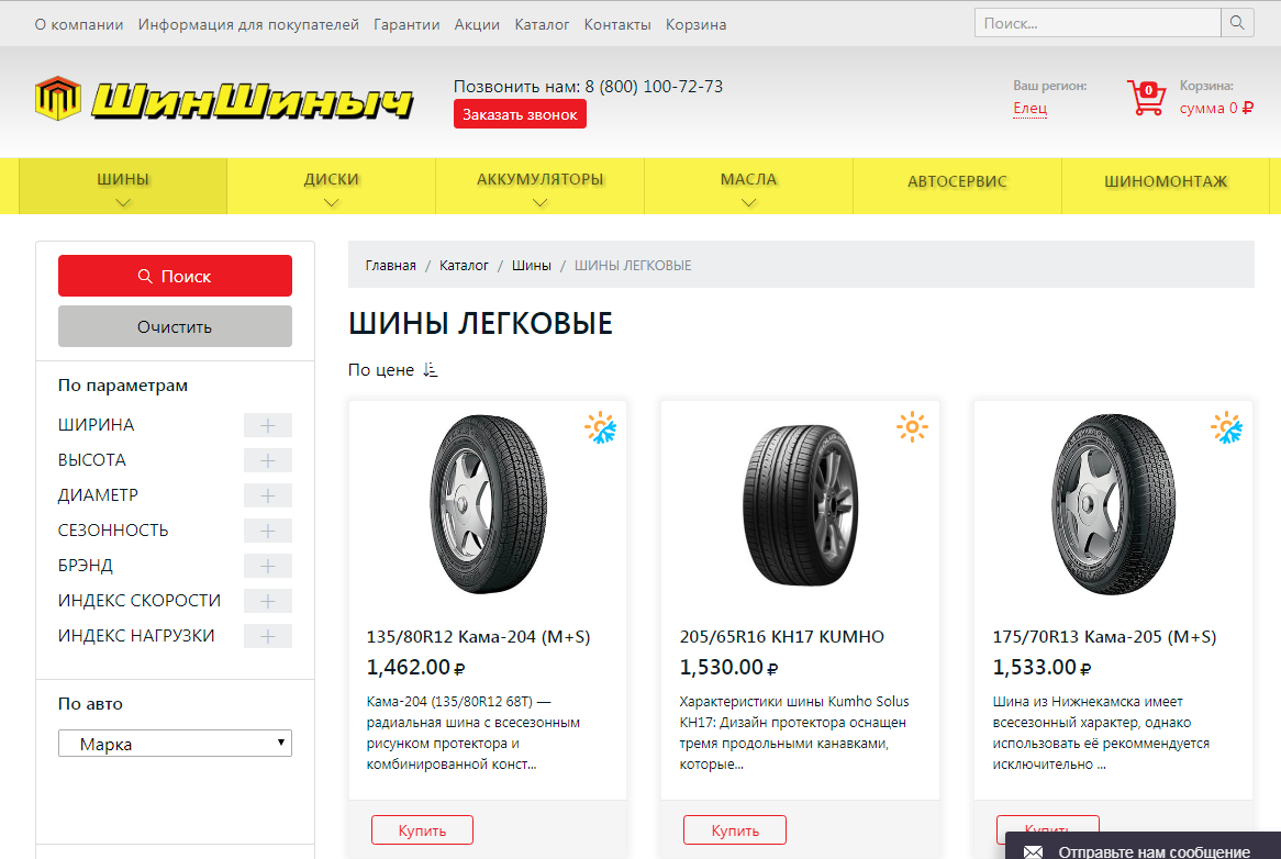 The buyer has the ability to add products from the comparison list for a more visual selection by parameters.