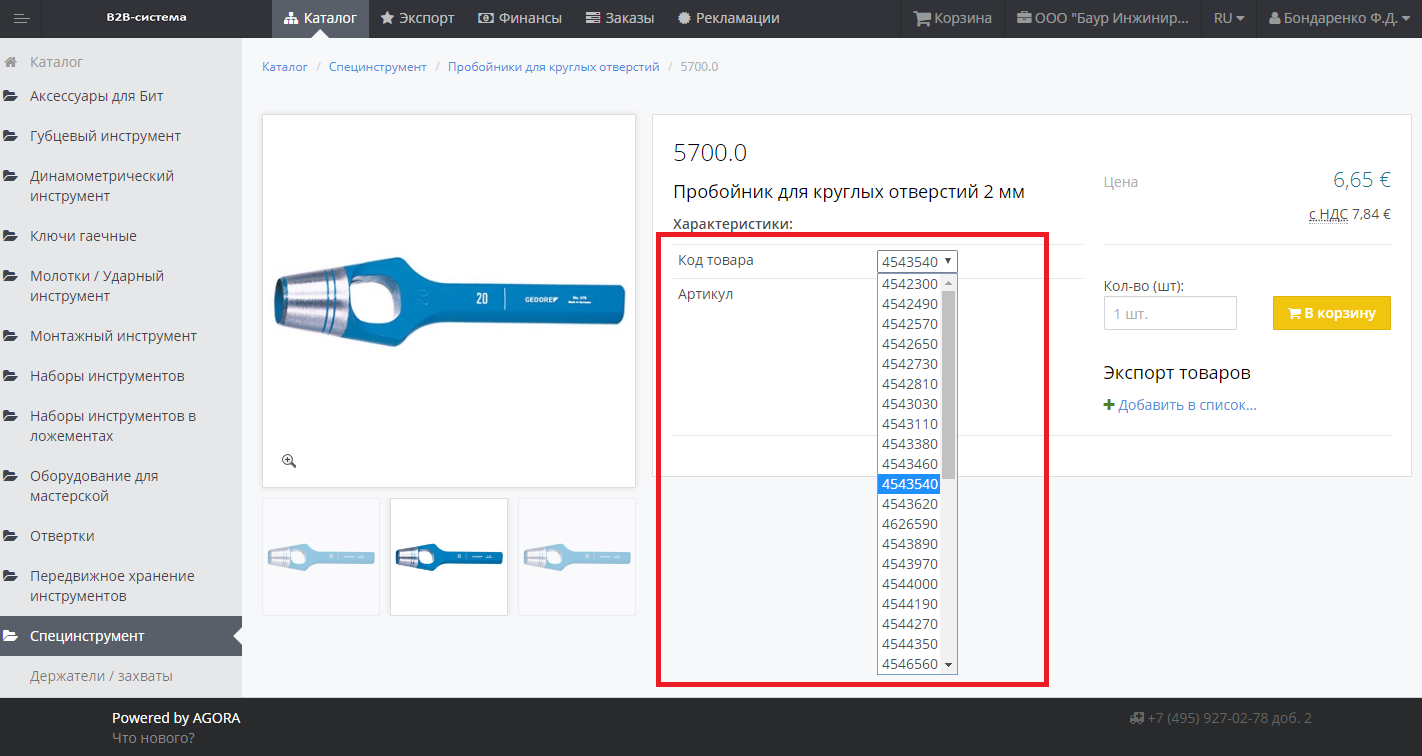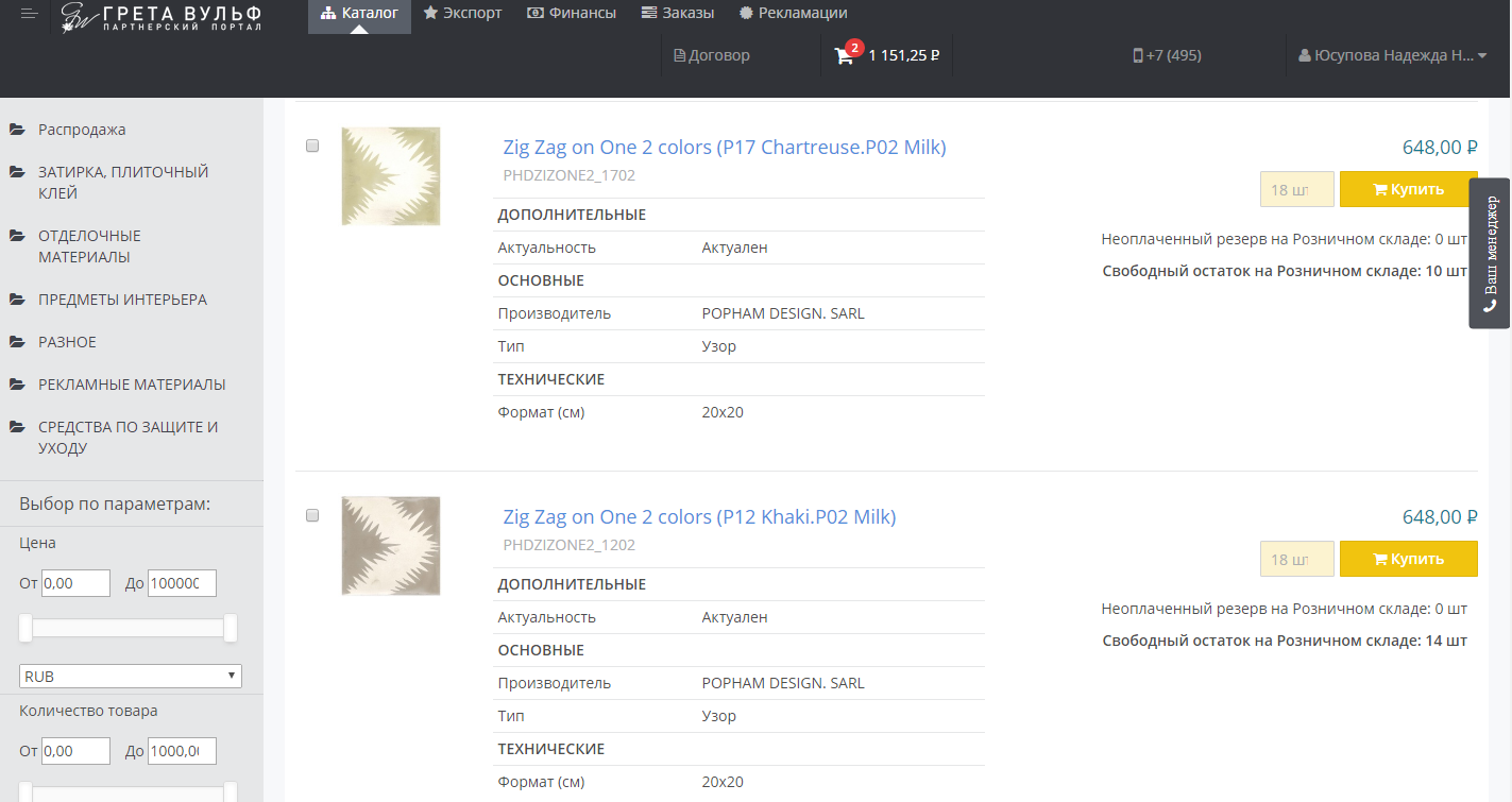 Карточка товараВ карточке отображается основная информация о товаре и его изображения. При этом поддерживается возможность оформления заказа и заключения сделки по аналогии с интернет-магазином. Возможно оформление заказа в интернет-магазине без регистрации. Шаблоны конструктора товаровПоддерживается создание шаблонов со списком свойств для более качественного описания товаров в определенной товарной категории. Затем, при добавлении товаров вручную, будет отображаться список необходимых свойств для данной категории товаров. Для использования конструктора товаров: 1. Создание шаблона конструктора товаровДобавьте шаблон конструктора товаров в административной части портала. 2. Настройка шаблонаНастройте новый шаблон путем выбора доступных свойств товаров и категорий из общего списка. 3. Добавление товара/услуги с использованием шаблонаПри добавлении товара/услуги выберите созданный и настроенный шаблон, опишите добавляемый товар на его основе. Модификации в карточке товараВсе выполненные модификации отображаются в карточке товара и доступны для просмотра, как показано на рисунке ниже. Экспорт списка товаров из кабинета заказчикаЗаказчик может сформировать любой список товаров и экспортировать его в формате XLS, CSV или в виде YML (активной обновляемой ссылки), для чего необходимо выполнить следующие действия: 1. Формирование списка товаров для экспортаПерейдите в меню "Экспорт" и создайте список товаров для экспорта. 2. Экспорт товаровВыполните экспорт товаров после выбора соответствующих опций. Отображение резервов в каталогеВ каталоге напротив каждой позиции отображается остаток на складе, а в случае включения модуля "Резервы", рядом с остатком будет отображаться количество позиций в резерве, зарезервированных данным и/или другими заказчиками. Индикация остатковИмеется возможность отображения остатков в виде индикатора (как показано на рисунке ниже). Таким образом, поставщик может визуально оценить общий объем остатков. При наведении курсора на индикатор отображается количество оставшихся единиц товара. |