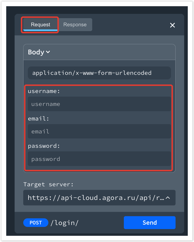 - A form for filling out the request fields will open. In the Request tab, fill in all the required fields.