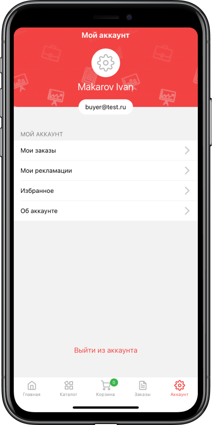 Для просмотра регистрационных данных и перехода в раздел заказов и рекламаций.