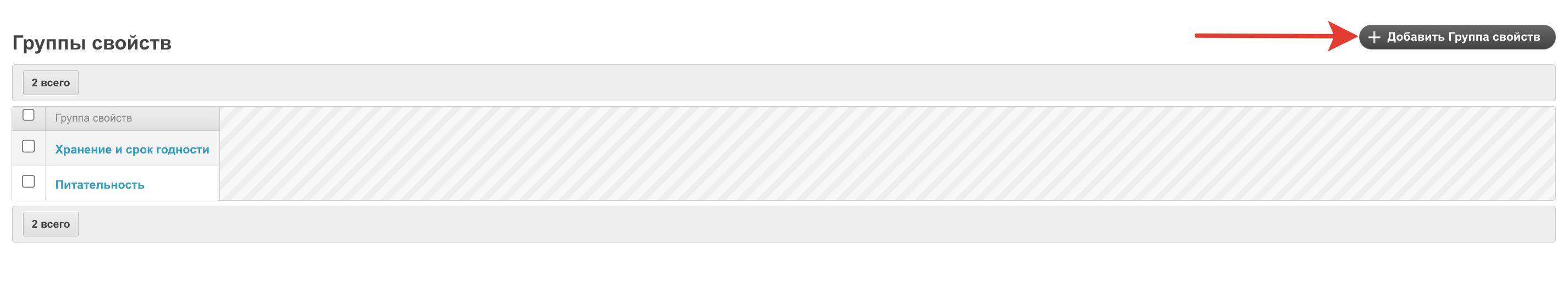 Можно изменить существующую группу или добавить новую. Для добавления нажмите на кнопку Добавить Группа свойств.