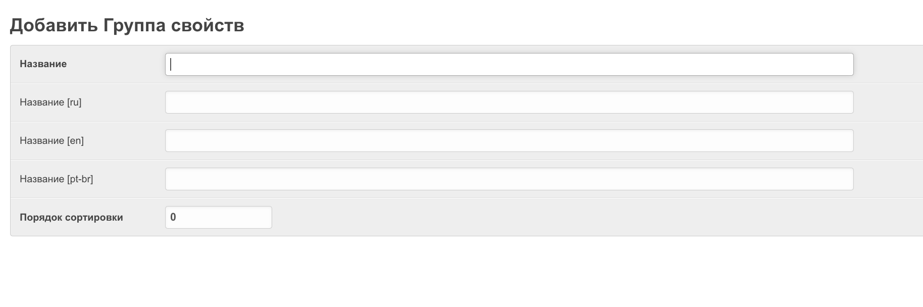 После этого укажите Название группы на разных языках и Порядок сортировки. Затем сохраните данные.