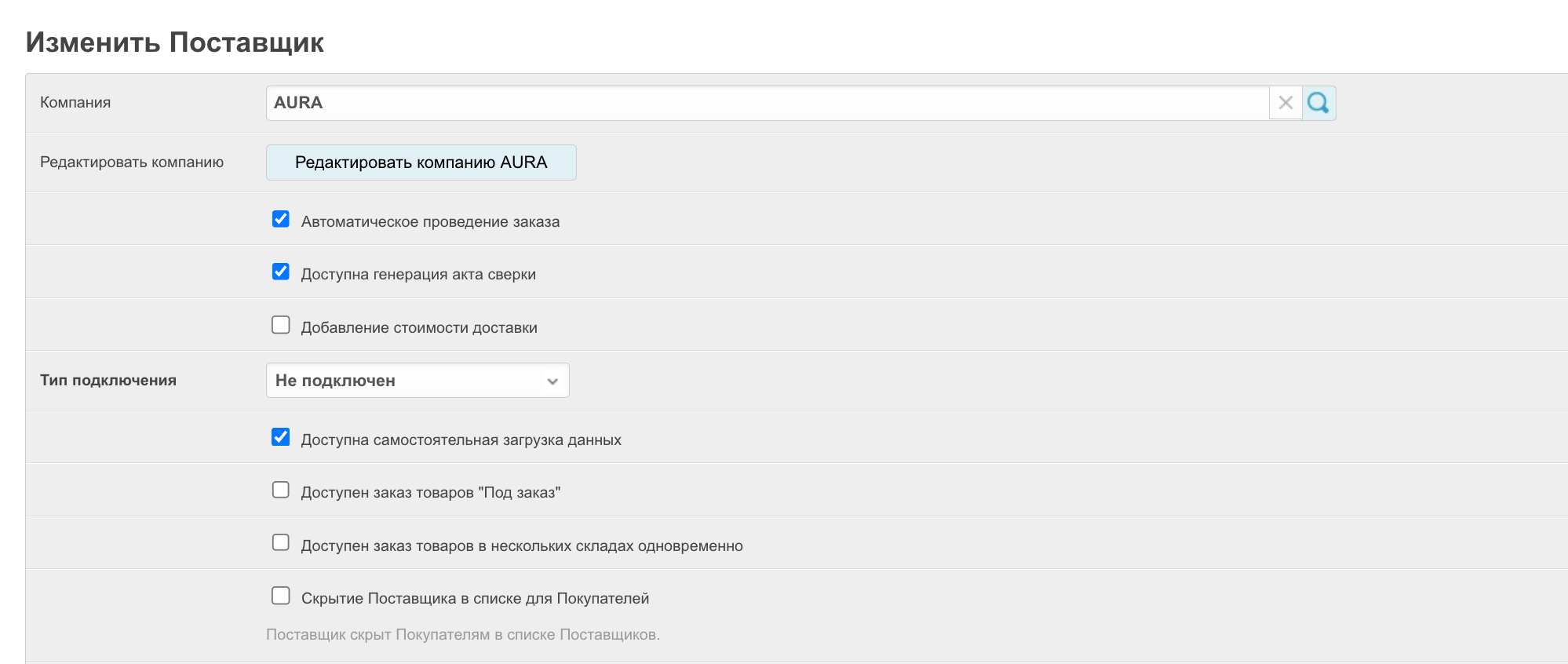 Подробнее про возможности настроек поставщика через панель администратора рассказано на этой странице, а также в видео: