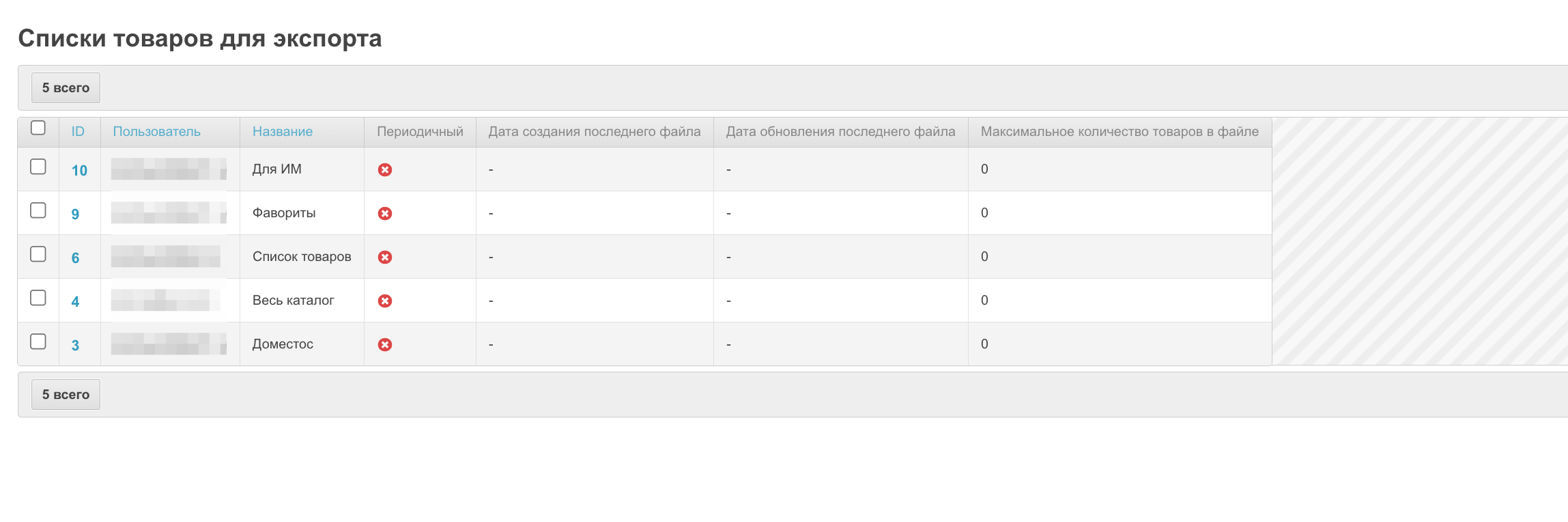 На открывшейся странице можно увидеть информацию по каждому списку экспорта.