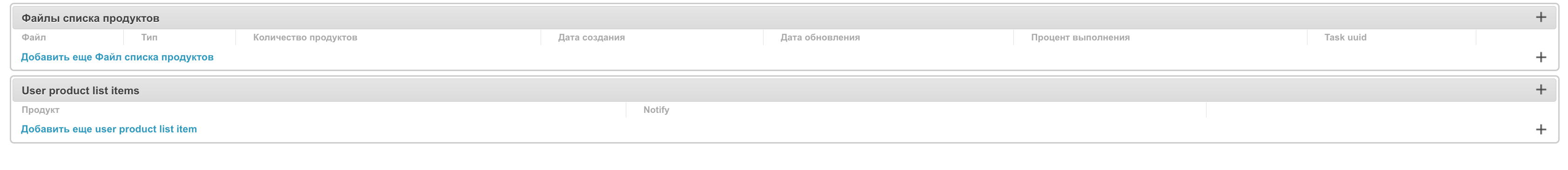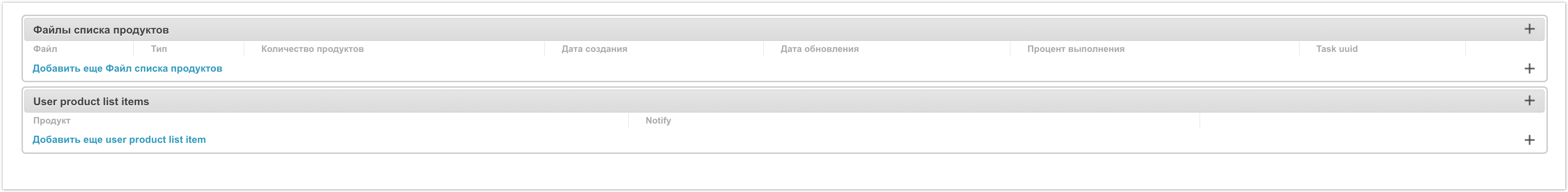 User product list items - список продуктов с возможностью настройки уведомлений о их появлении в наличии.