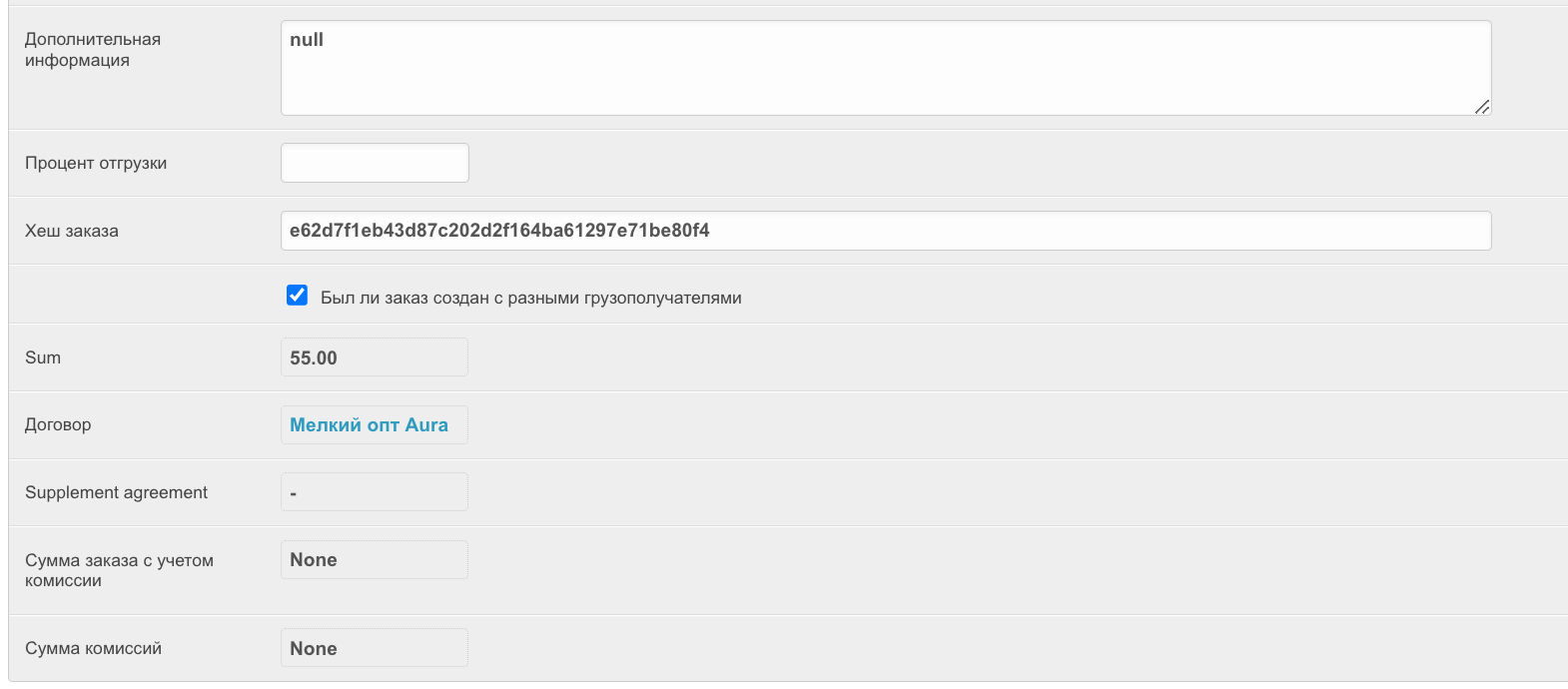 Сумма заказа с учетом комиссии - поле актуально при использовании комиссий на платформе.