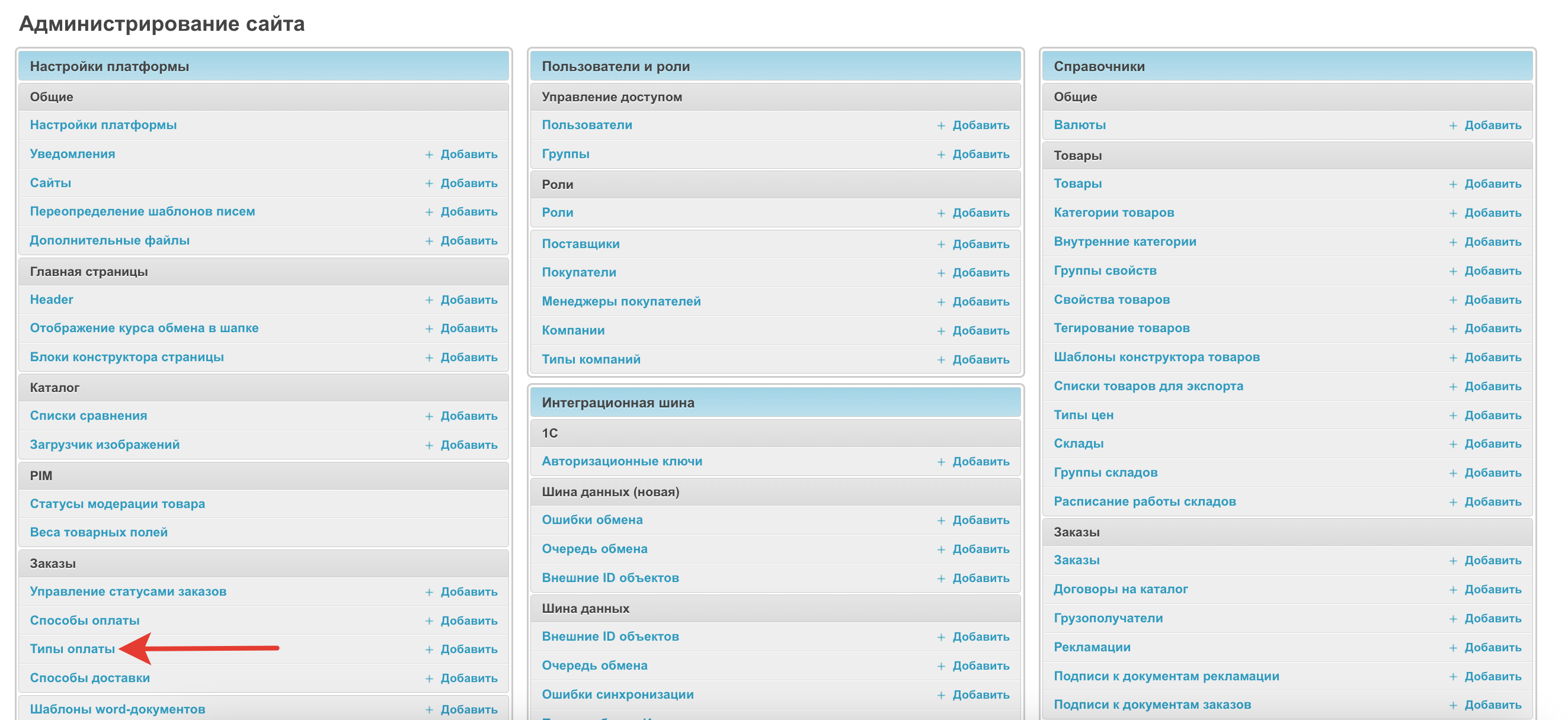 Настройка типов оплаты в административной панели