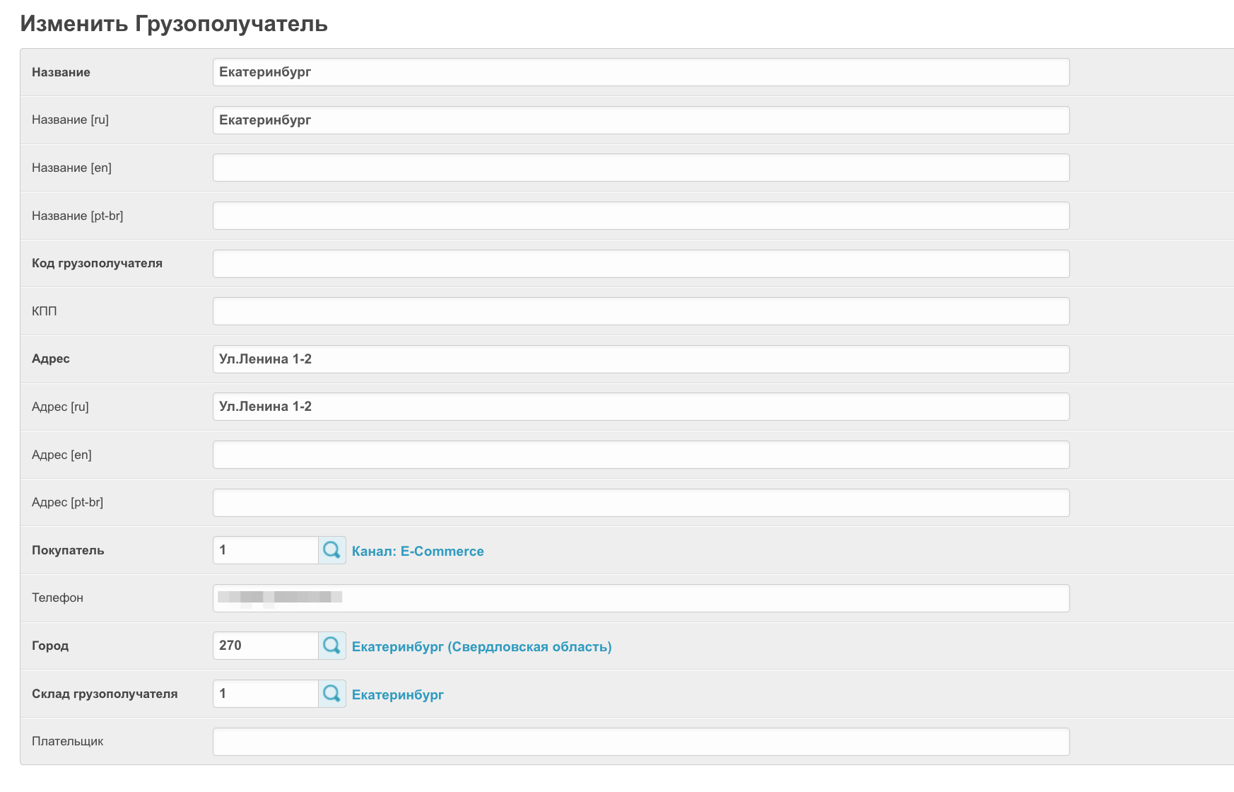 При переходе непосредственно в шаблон есть возможность редактировать данные грузополучателя: