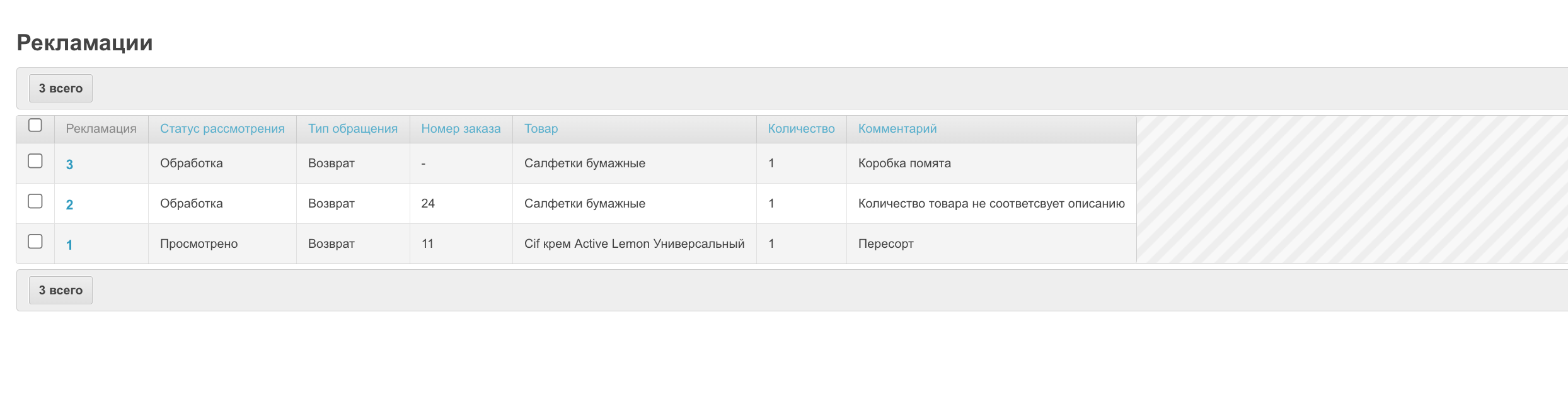 Можно перейти в карточку конкретной рекламации. Для этого нужно нажать на ее номер.