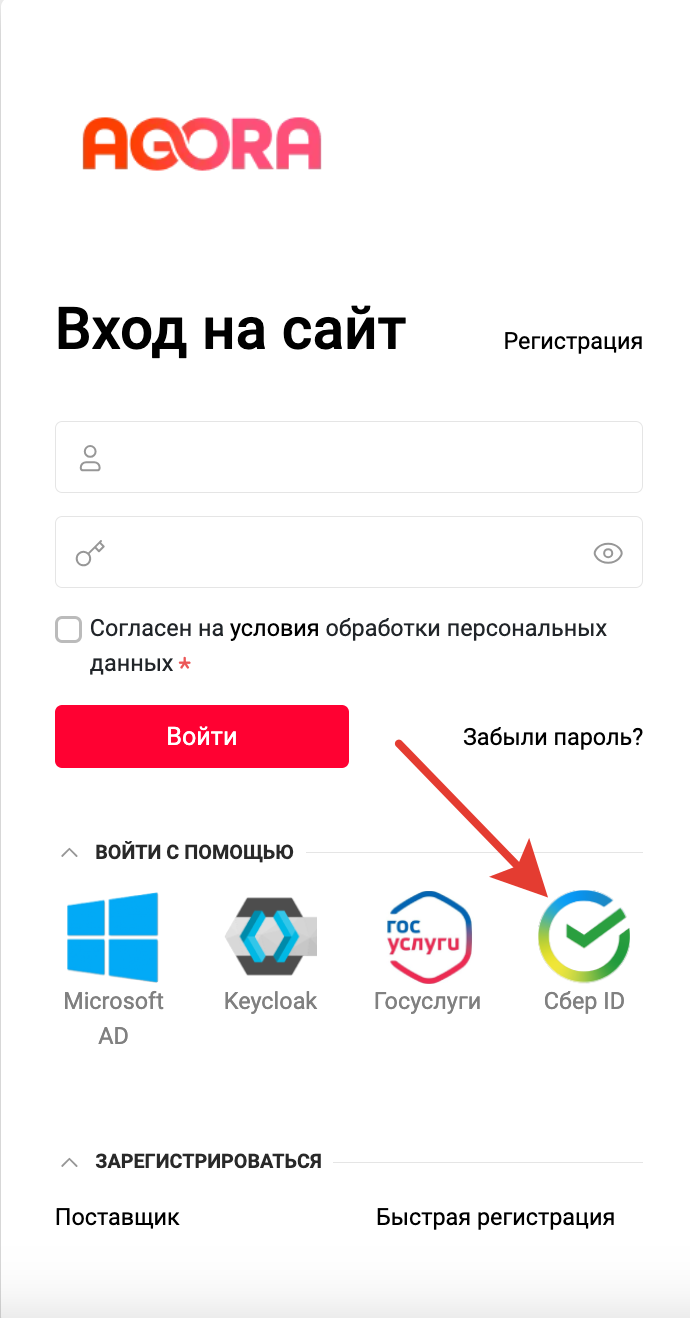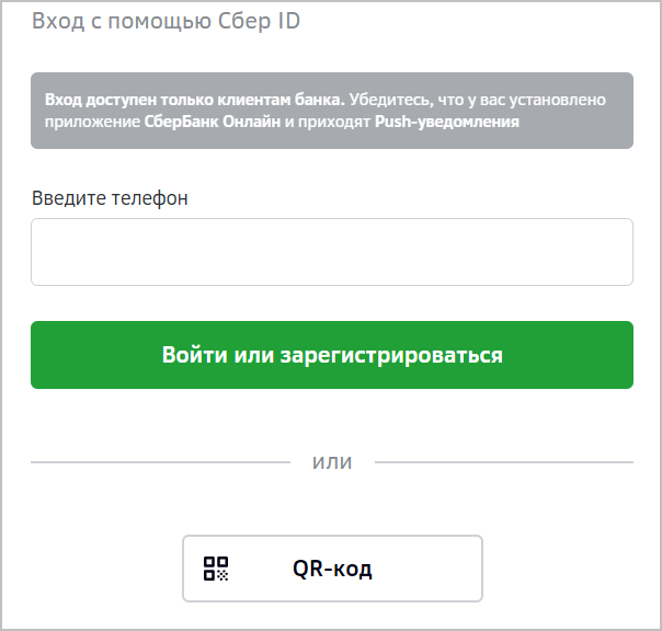 При подключении Сбер ID в форме регистрации появляется кнопка Войти по Сбер ID.