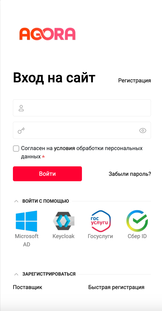 Если пароль бул введен неправильно 3 раза подряд, необходимо ввести капчу (буквы и цифры с картинки). Ввод капчи позволяет обезопасить доступ поставщиков и покупателей на портал Agora: