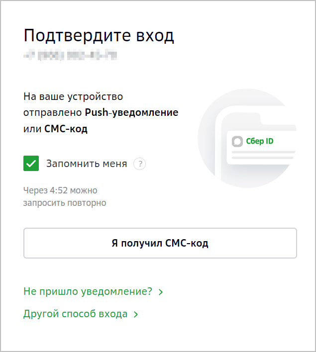 После получения кода по СМС необходимо нажать кнопку Я получил СМС-код и ввести код.