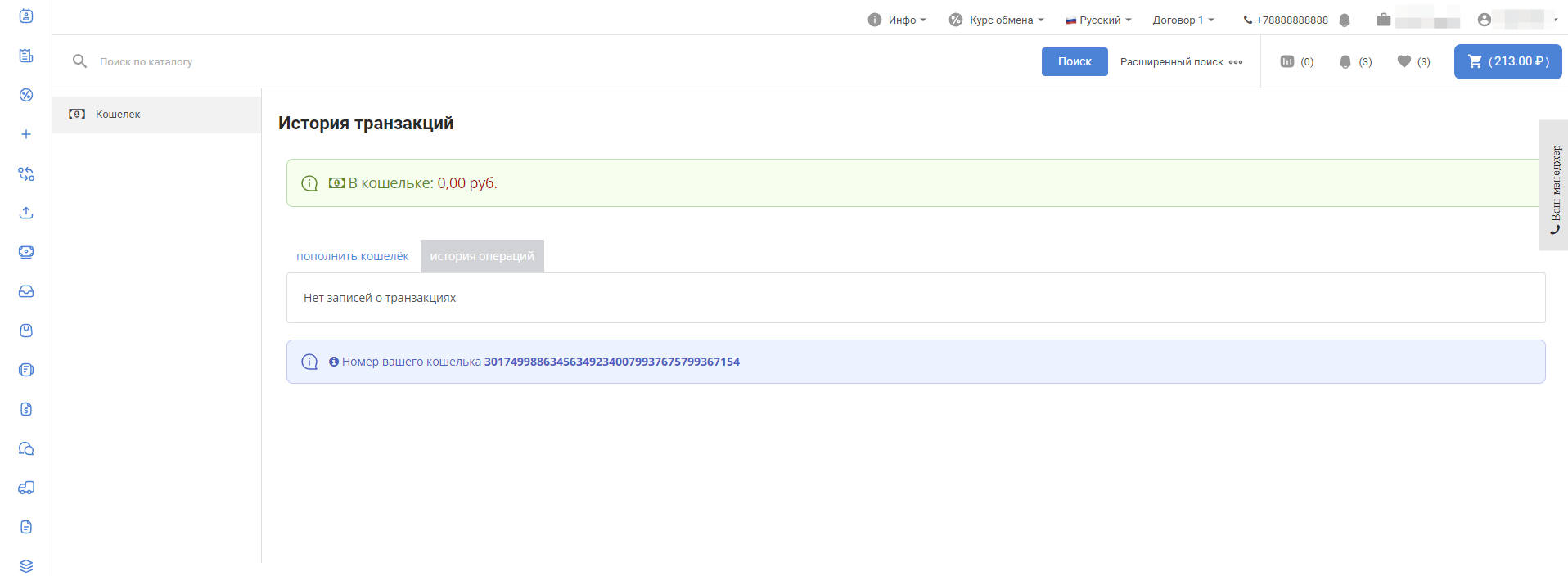 - Номер личного кошелька.