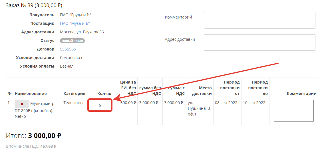 Сумма без НДС — сумма за общее количество товаров без НДС. Подтягивается из процедуры торга.