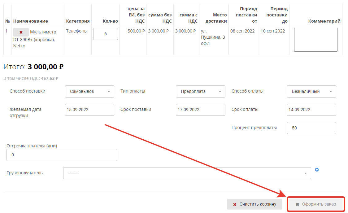Далее необходимо заполнить информацию об оплате и доставке. Для совершения заказа кликните по кнопке Оформить заказ.