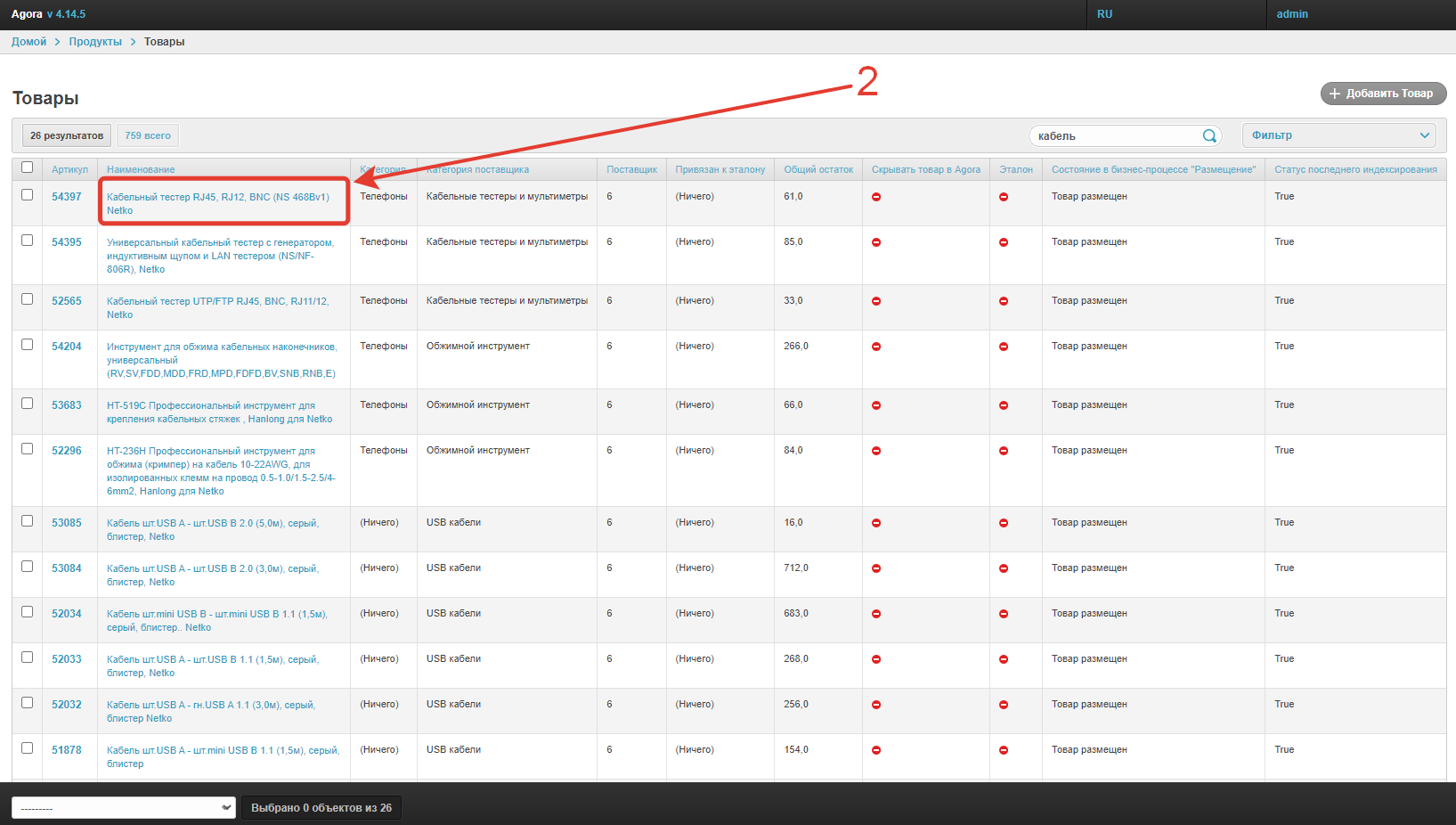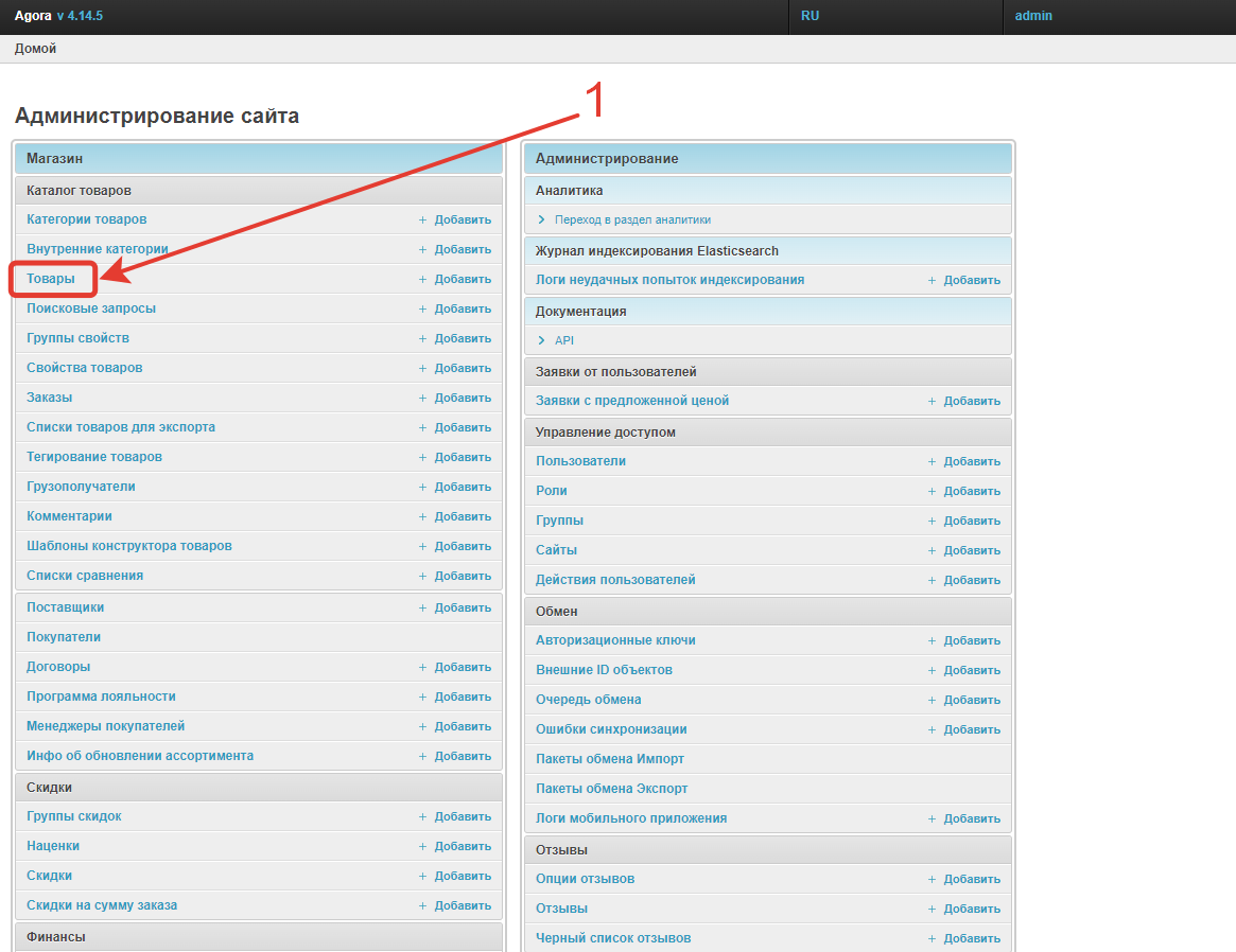 Настройка рекомендованных товаров производится в административной панели проекта. Их необходимо добавить для каждого продукта каталога в разделе Товары.