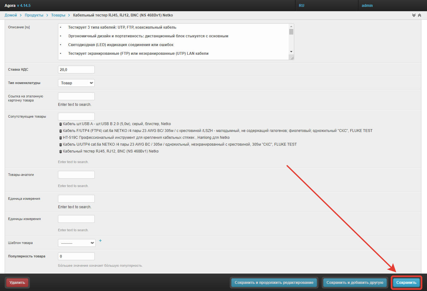 После внесения изменений нажмите Сохранить.
