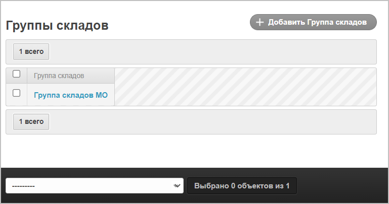 Для добавления группы складов нажмите кнопку Добавить Группа складов.