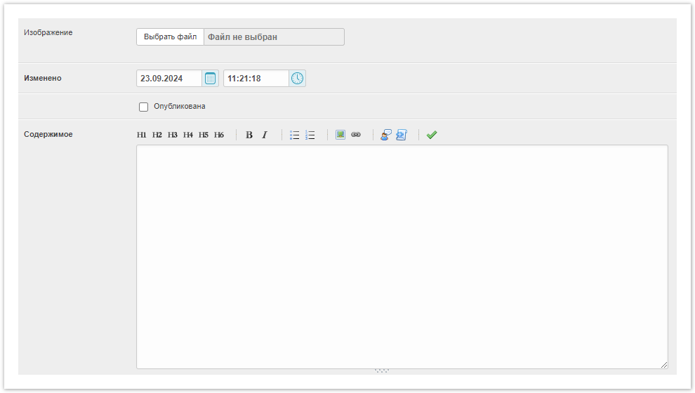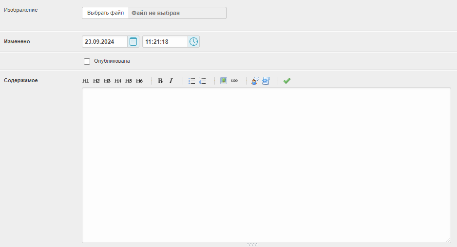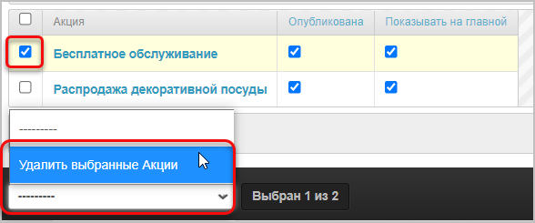 Опубликована — чекбокс для публикации или прекращения публикации акции.