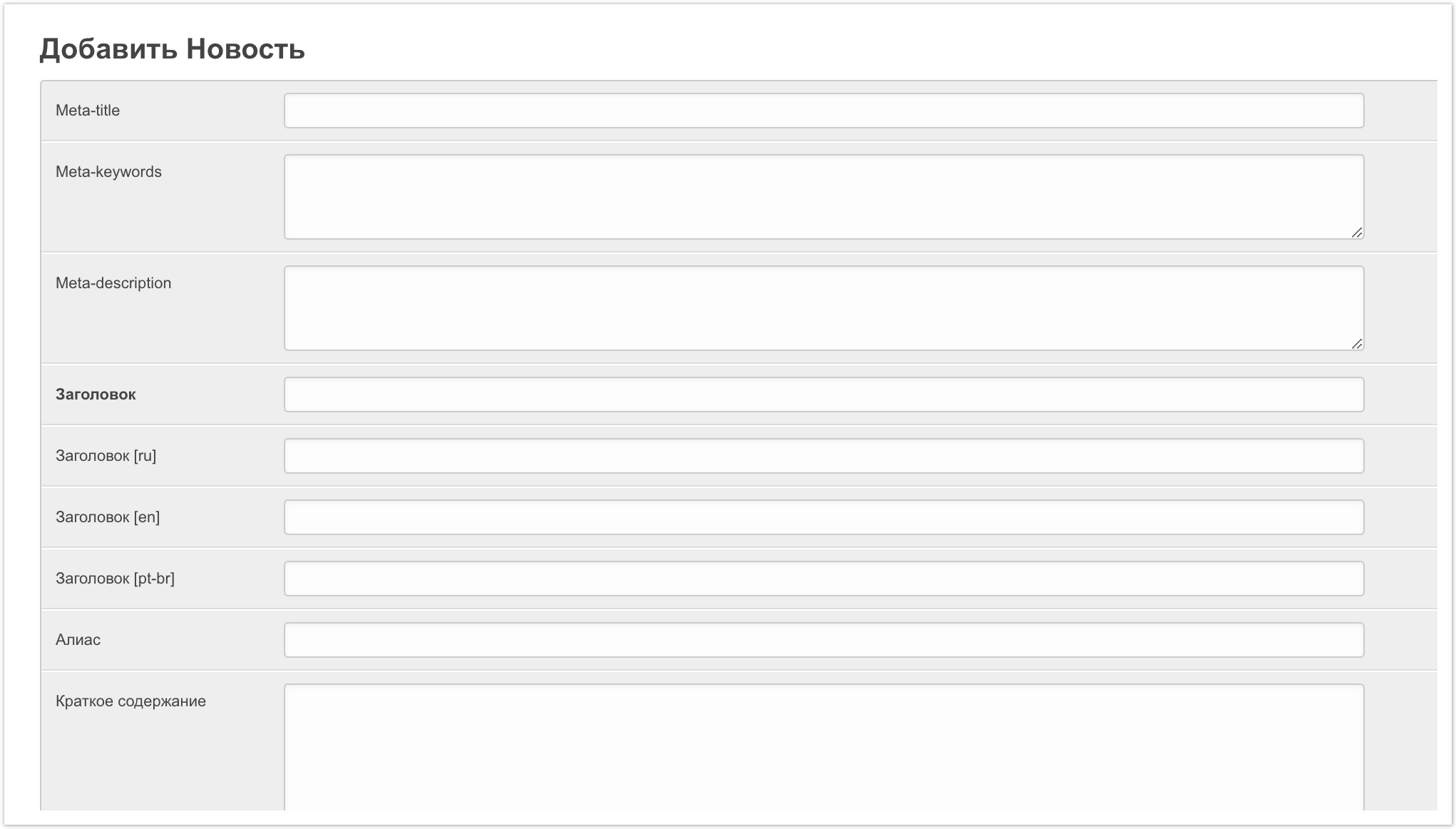 Краткое содержание — краткое содержание новости (заполняется на нужном языке).