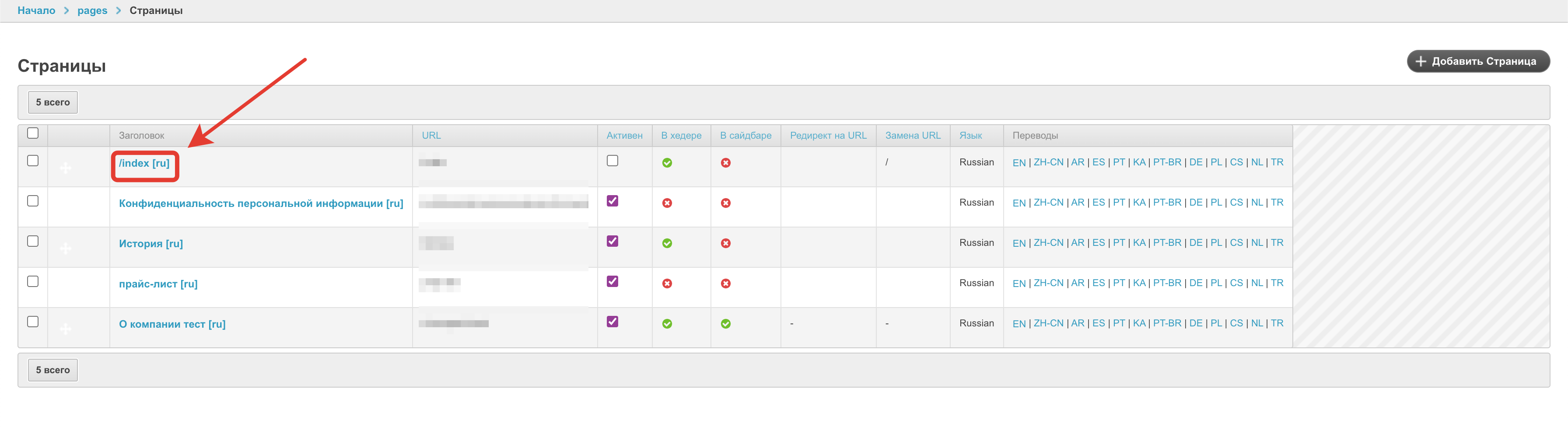 Для управления информационными страницами в административной панели перейдите в раздел Страницы.
