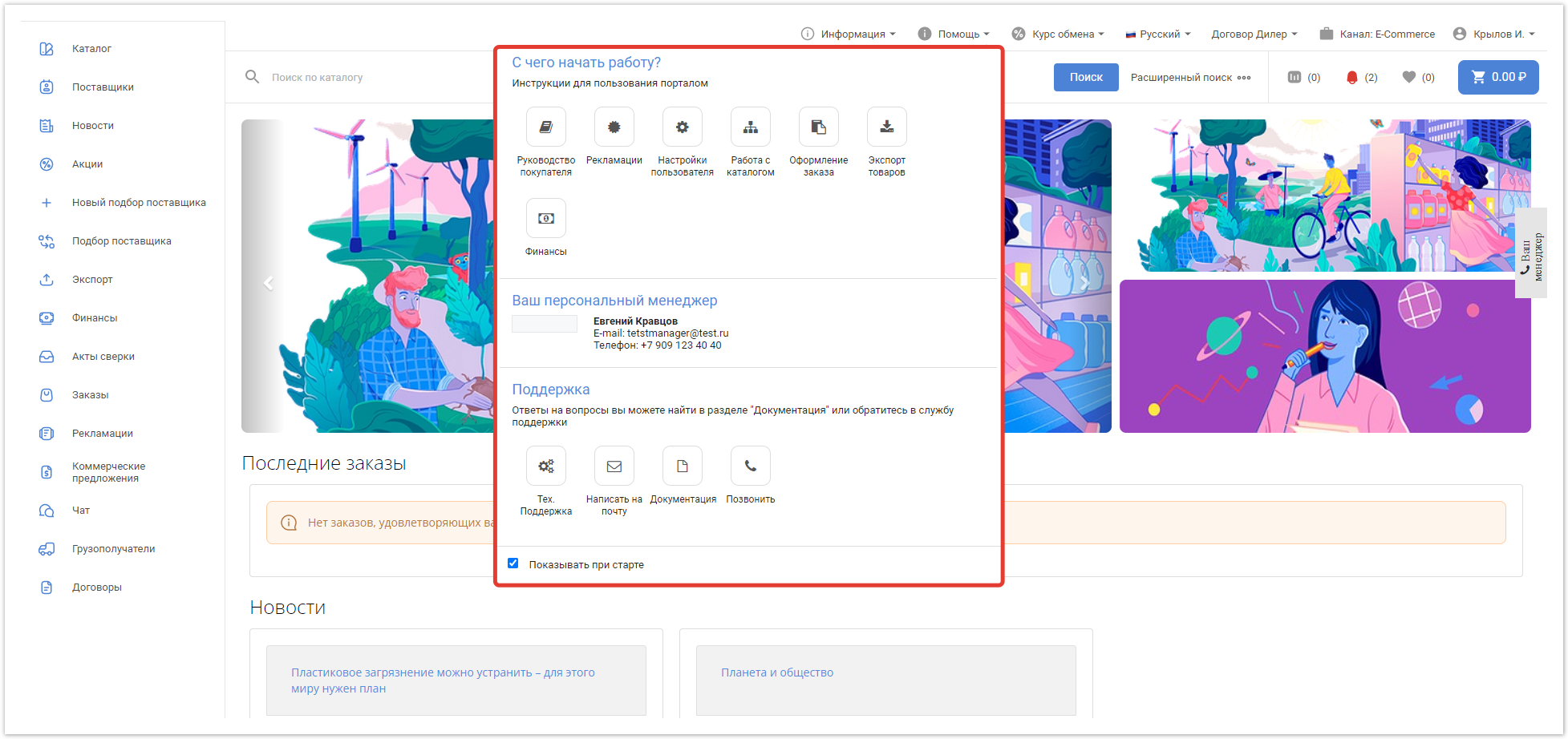 При включенном информере после авторизации в личном кабинете пользователю отобразится выпадающее меню Помощь с настроенным содержимым.