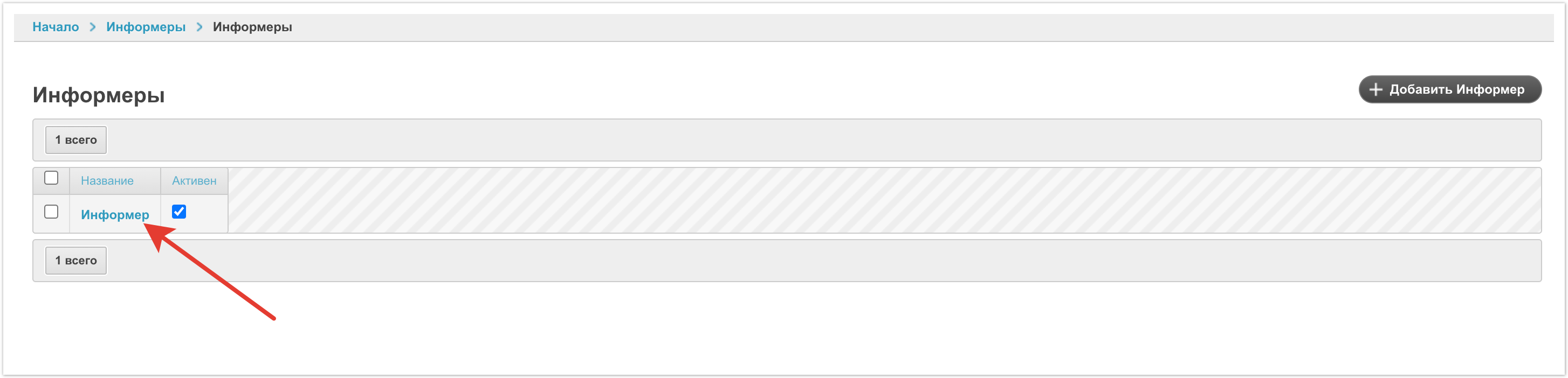 Чтобы внести изменение необходимо нажать на название информера.
